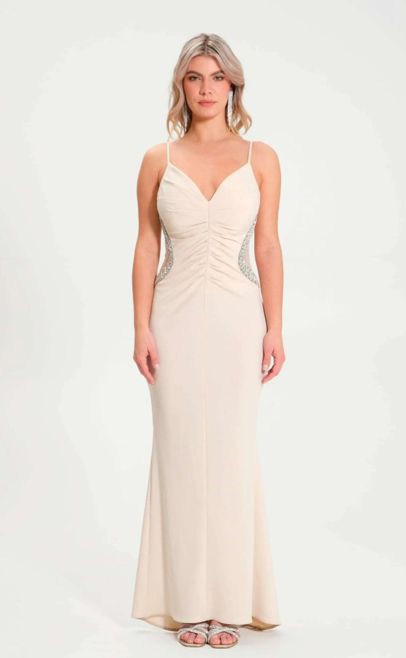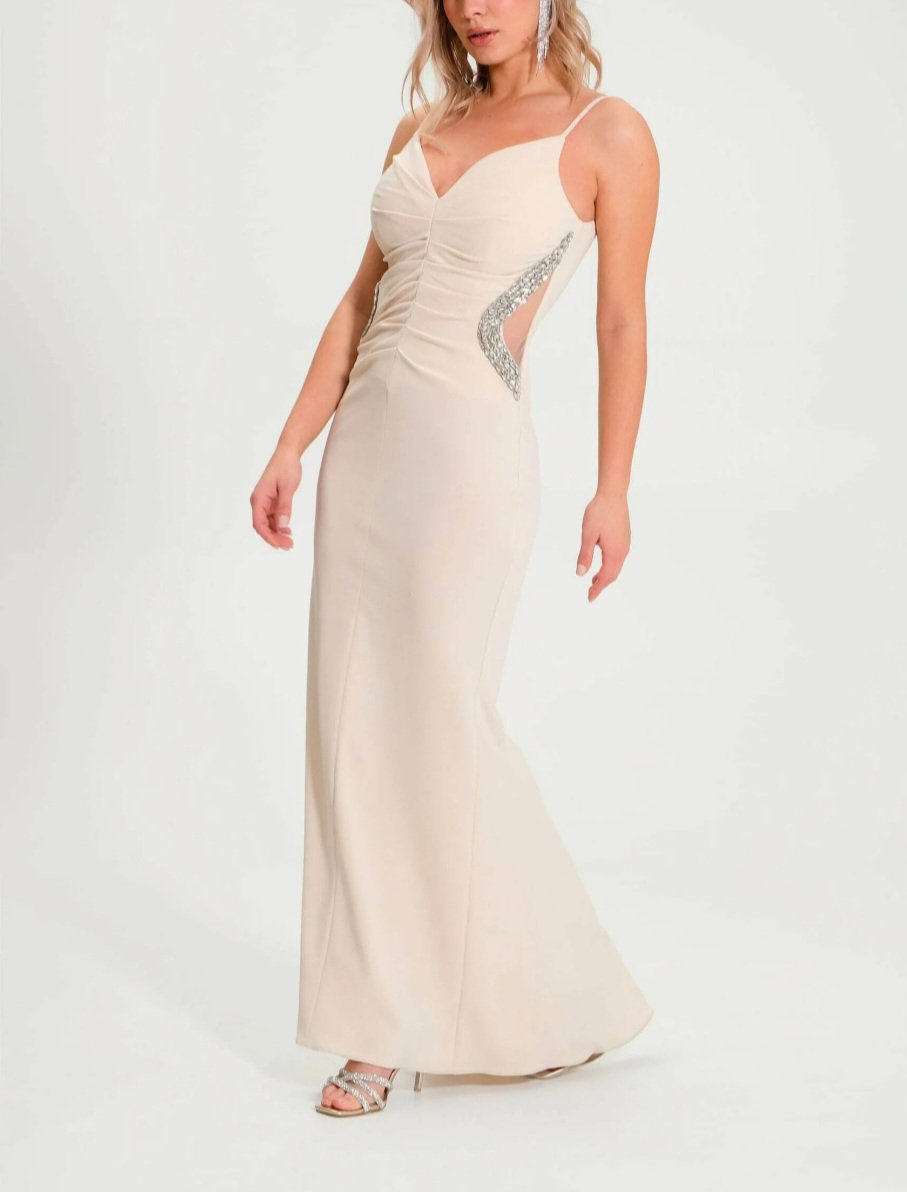 bellissimo abito da sera con cristalli .in tessuto raso opaco elasticizzato inserto di retina sui fianchi coda dietro spalline sottili adatto anche x cambio abito sposa made in italy nuova collezione Rinascimento