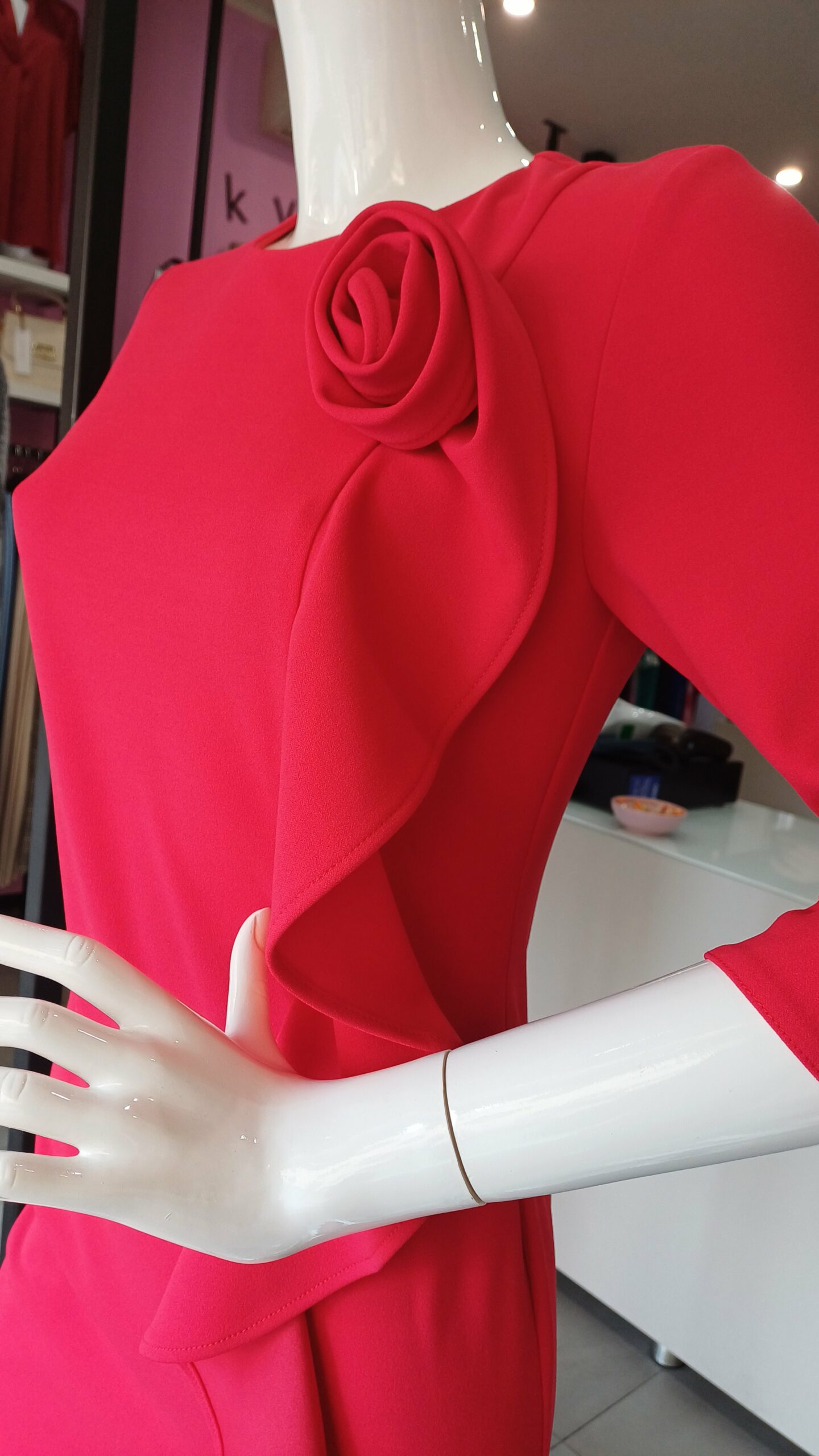 abito Rinascimento con rousce e motivo di rosa in rilievo manica a 3/4 lampo invisibile dietro è spacchetto ideale elegante e raffinato madeinitaly