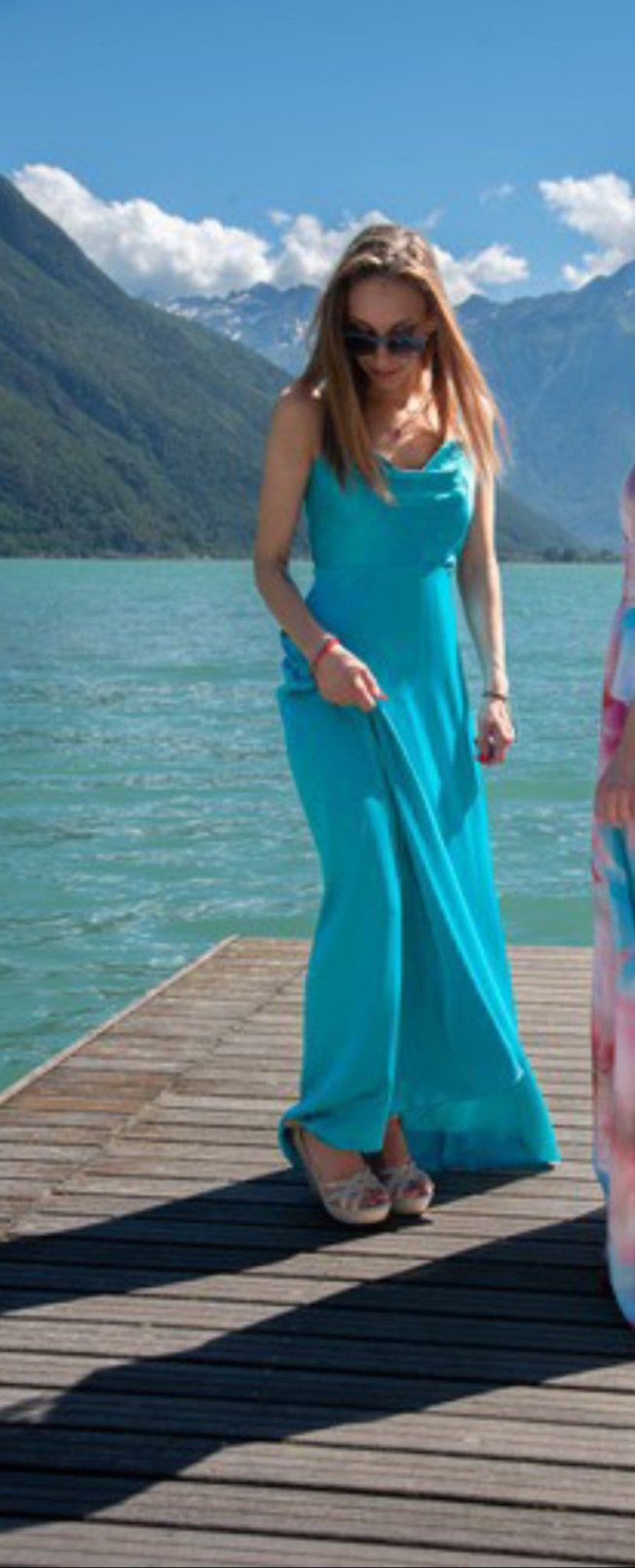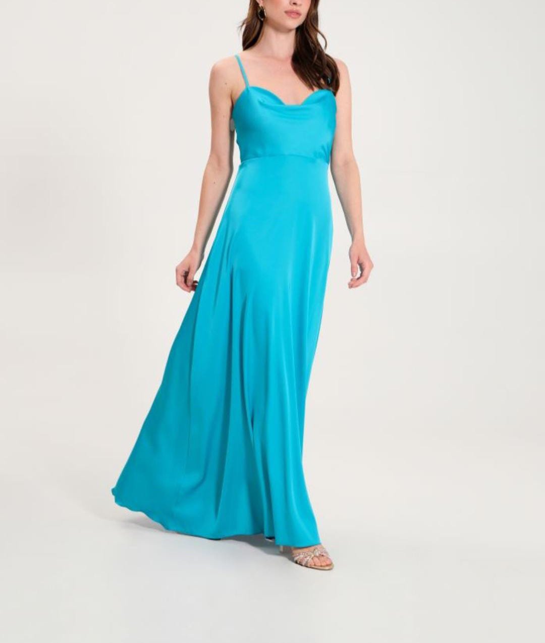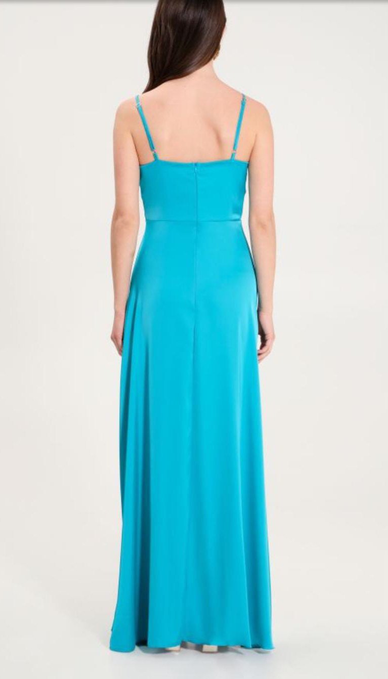 abito Rinascimento in raso lungo da cerimonia scollo drappeggiato modello stile impero spalline completamente regolabili tessuto in raso lucido collezione 2024 madeinitaly