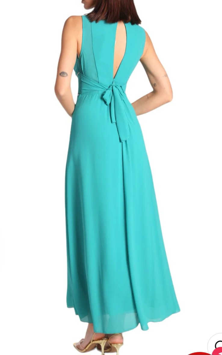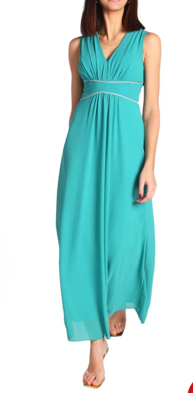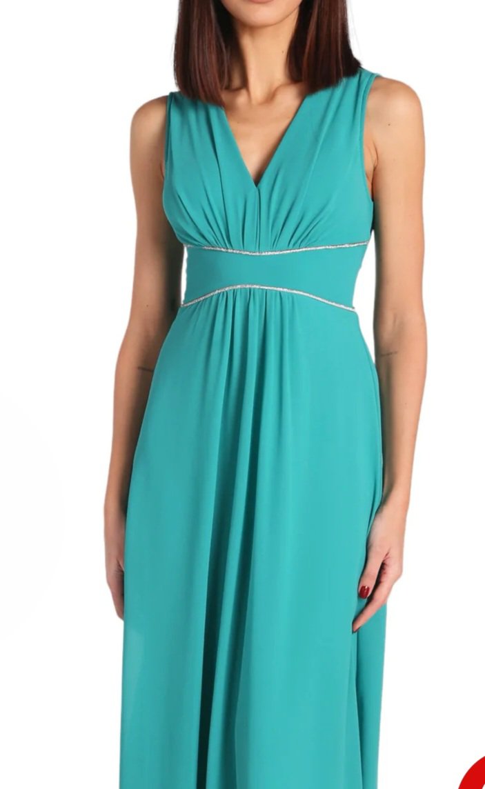 nuova collezione 2024 abito stile impero completamente foderato impreziosito sotto il seno da scintillanti lurex