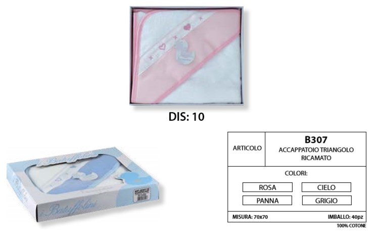 Accappatoio triangolo di spugna ricamato marca i Batuffolini, 70×70. 100% Cotone B307 Contattaci se hai bisogno di maggiori informazioni sull’articolo in vendita nel caso in cui queste non siano presenti nei dettagli sotto.