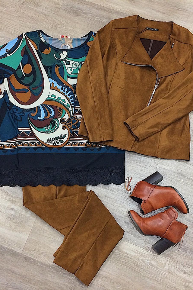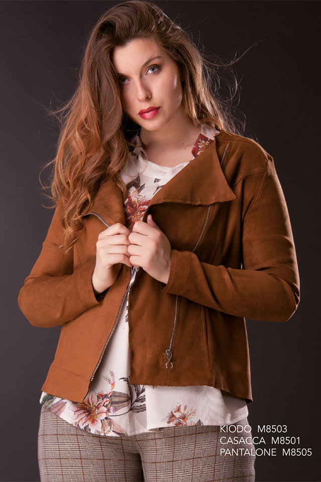 Giacca in simil pelle scamosciata tipo chiodo, in tessuto morbido ed elasticizzato, da abbinare ai pantaloni nello stesso tessuto o a jeans per un look grintoso!