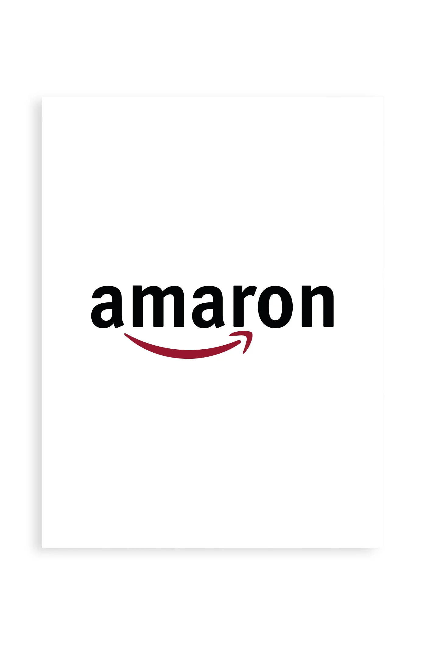 Poster 30 x 40 cm “Amaron” (sfondo bianco) con cornice nera in legno e protezione frontale in vetro.