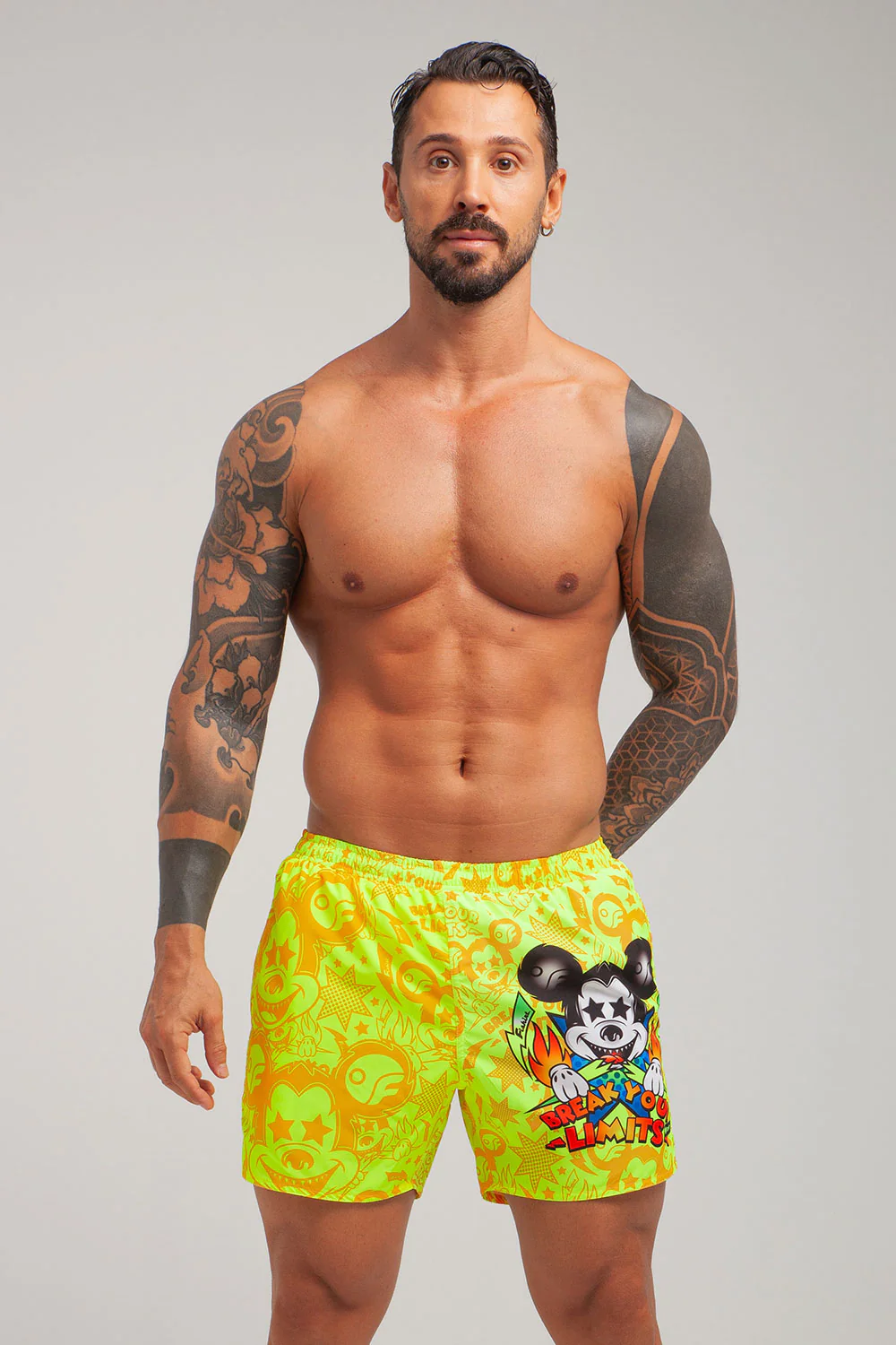 COSTUME DA BAGNO IN TESSUTO TECNICO ITALIANO 2 TASCHE LATERALI LACCETTO INTERNO RETINA INTERNA GRAFICHE UNICHE DISEGNATE A MANO RAPIDA ASCIUGATURA MADE IN ITALY RESISTENTE A CLORO, SALSEDINE E ALTRI AGENTI ESTERNI COMPOSIZIONE: 100% POLIESTERE – 150 gr/m2
