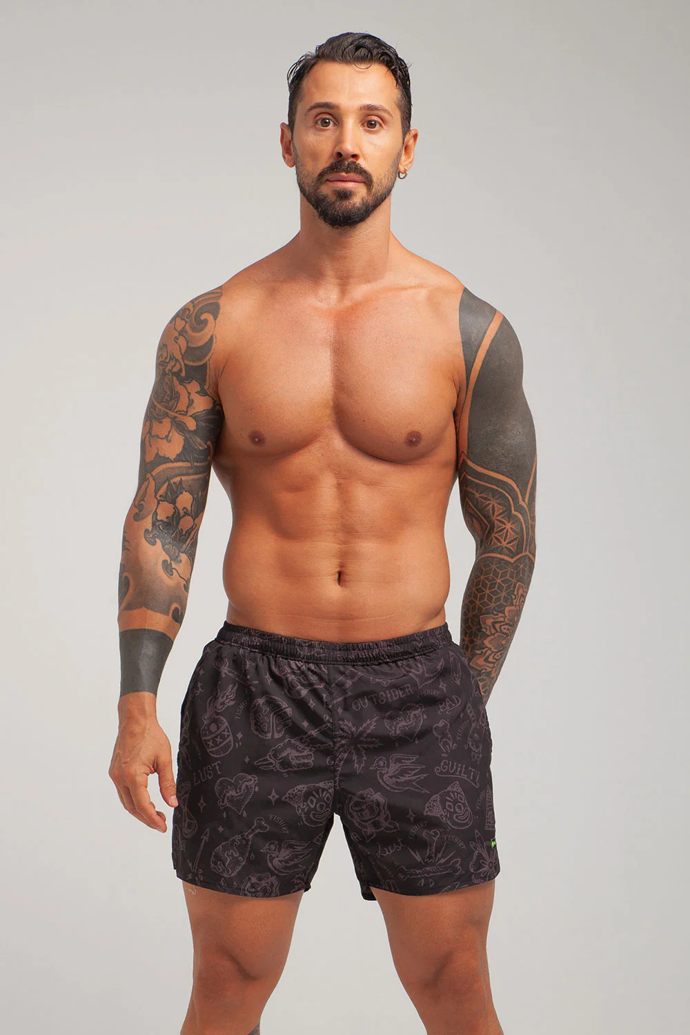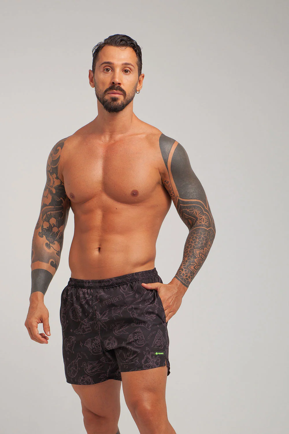 COSTUME DA BAGNO IN TESSUTO TECNICO ITALIANO 2 TASCHE LATERALI LACCETTO INTERNO RETINA INTERNA GRAFICHE UNICHE DISEGNATE A MANO RAPIDA ASCIUGATURA MADE IN ITALY RESISTENTE A CLORO, SALSEDINE E ALTRI AGENTI ESTERNI COMPOSIZIONE: 100% POLIESTERE – 150 gr/m2