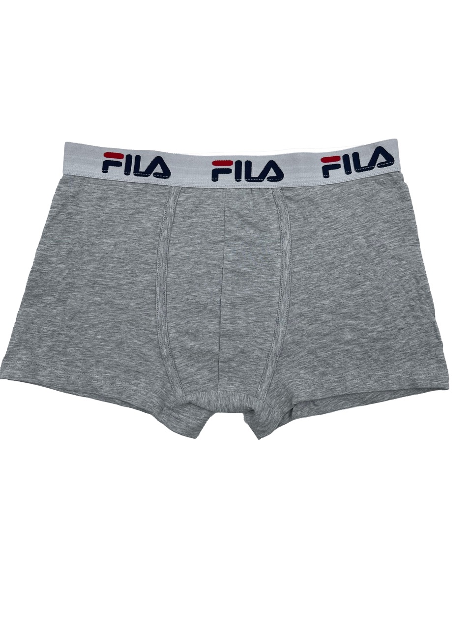 I boxer Fila uomo in cotone elasticizzato FU5016 offrono comfort e stile con tinta unita ed elastico stampato con logo Fila, disponibili in nero e grigio dalla S alla XXL.