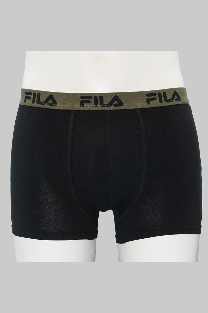 I boxer uomo Fila in cotone elasticizzato FU5016V offrono comfort e stile con tinta unita ed elastico stampato, disponibili in nero dalla S alla XXL.