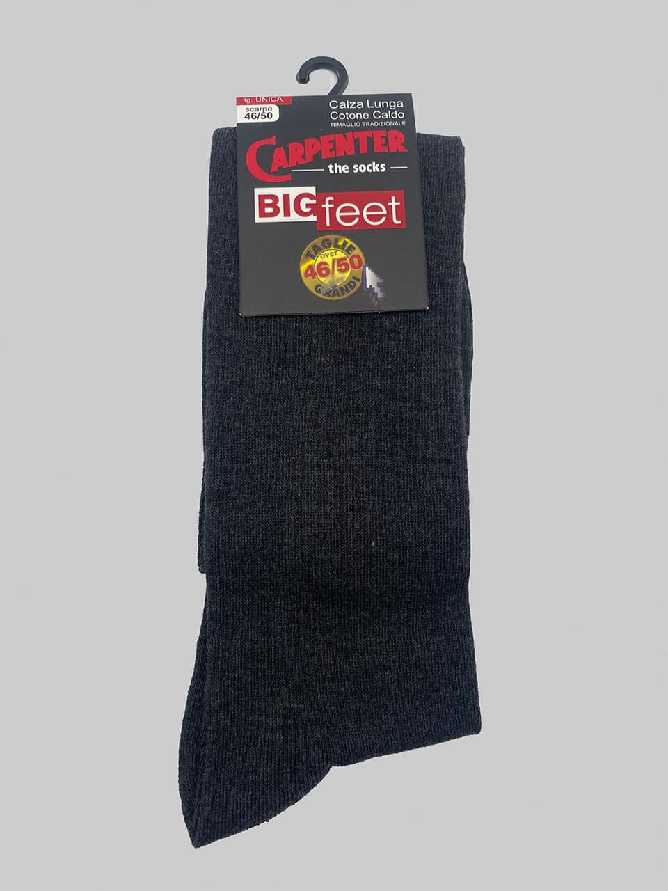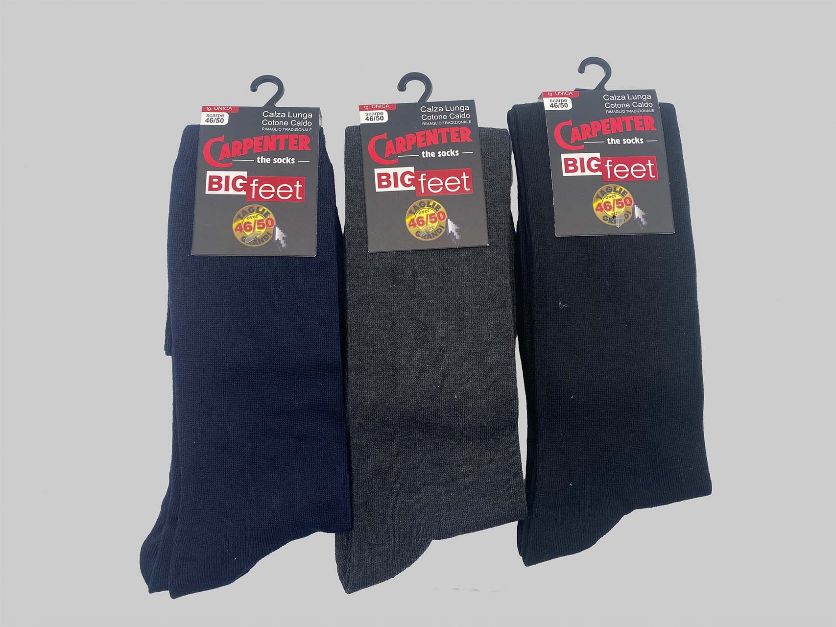 Calze da uomo invernali dal 46 al 50 lunghe Carpenter B401 in caldo cotone, linea Big Feet. Comode, resistenti e ideali per chi cerca calzini lunghi in taglie grandi.