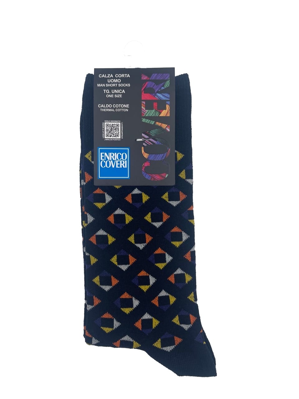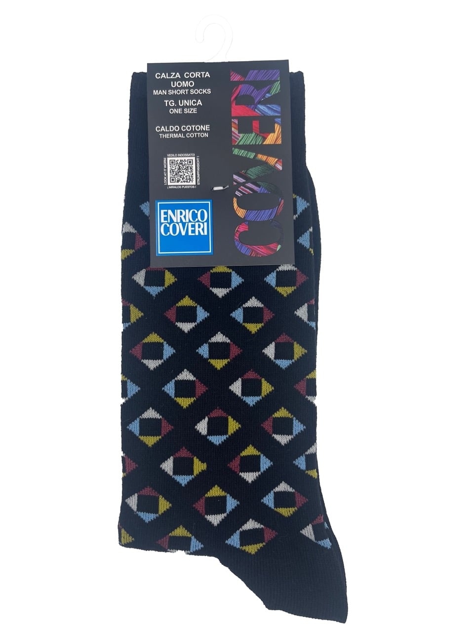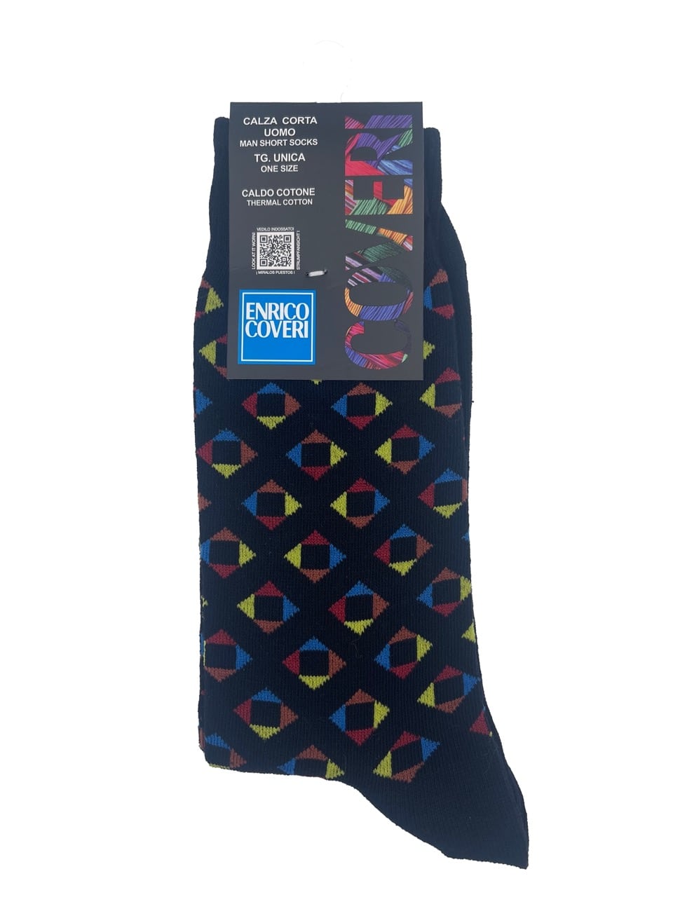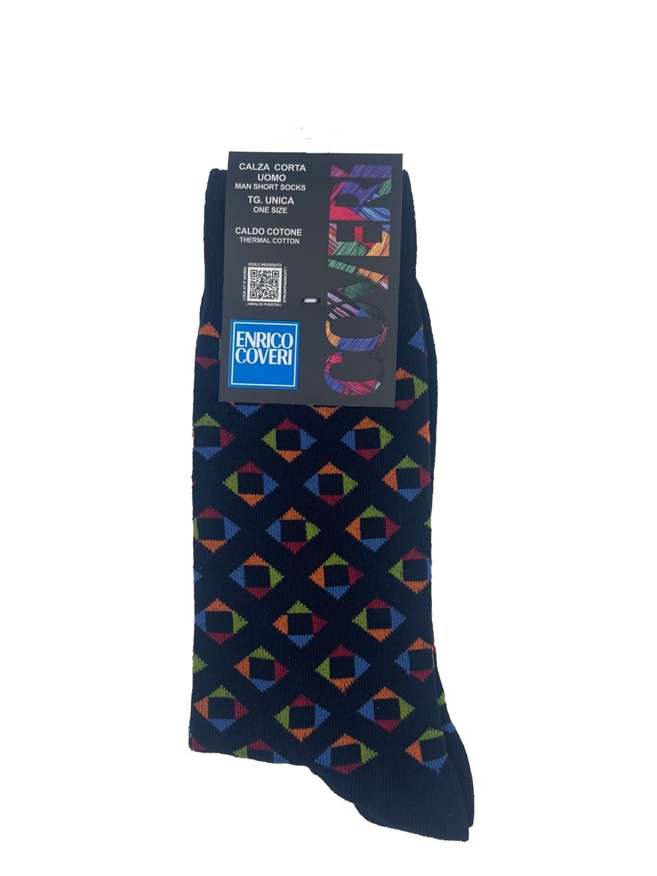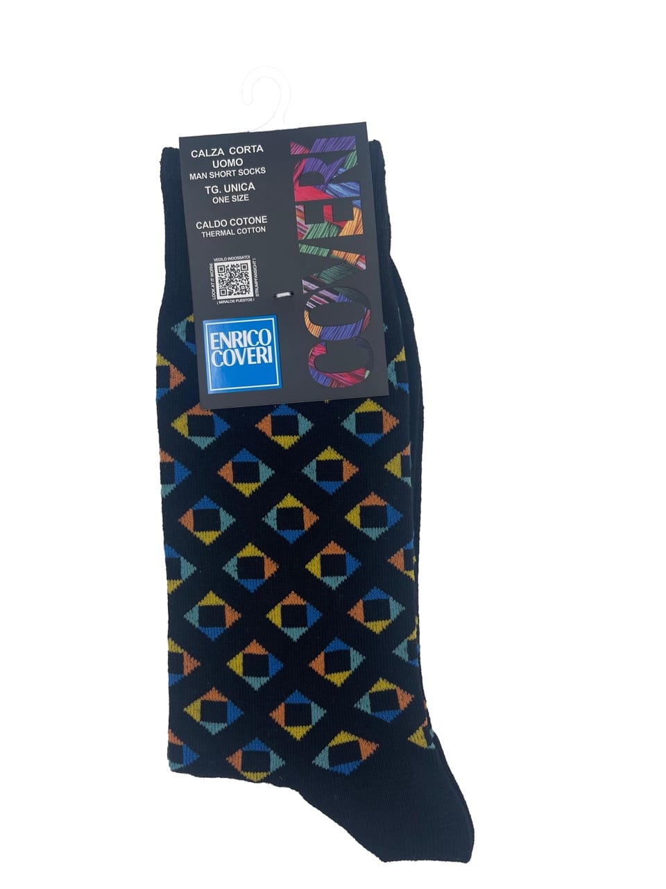 Con una vivace fantasia geometrica colorata, queste calze sono perfette per chi desidera un tocco di personalità nel proprio abbigliamento. I calzini a fantasia uomo sono disponibili in 7 colorazioni, ideali per abbinarsi a qualsiasi outfit, sia formale che casual.
