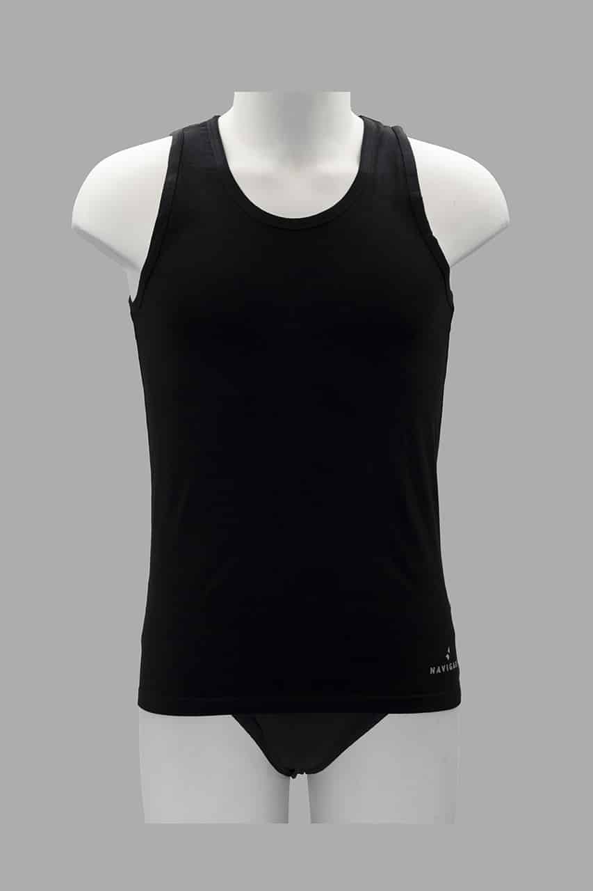 Canottiera uomo spalla larga elasticizzata Navigare B2Y572/S: comfort e vestibilità perfetta in cotone elasticizzato, disponibile in bianco e nero, taglie dalla 3 alla 7.