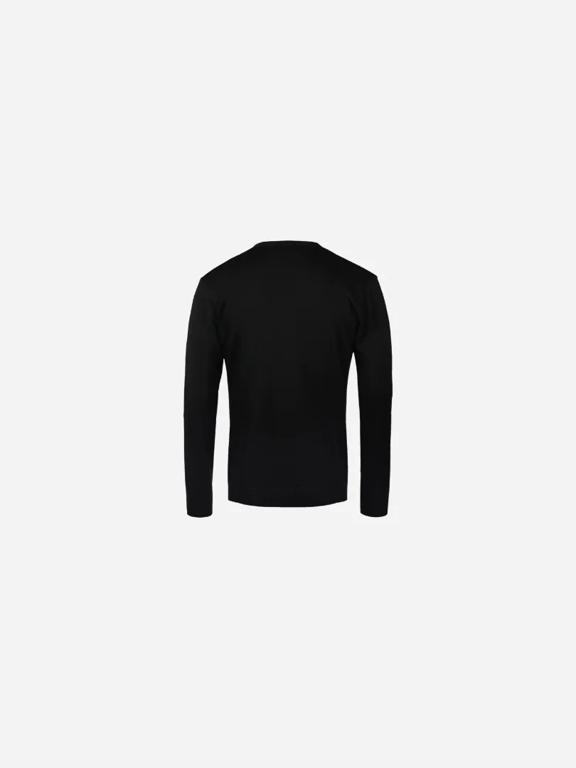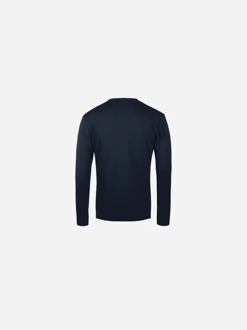 Maniche montate, polsini e fondo del capo con elastan e bordo in costina 1×1, patta dei bottoni in tricot con 6 bottoni in tinta, giromaniche scalvate, bottone di ricambio cucito all’interno.