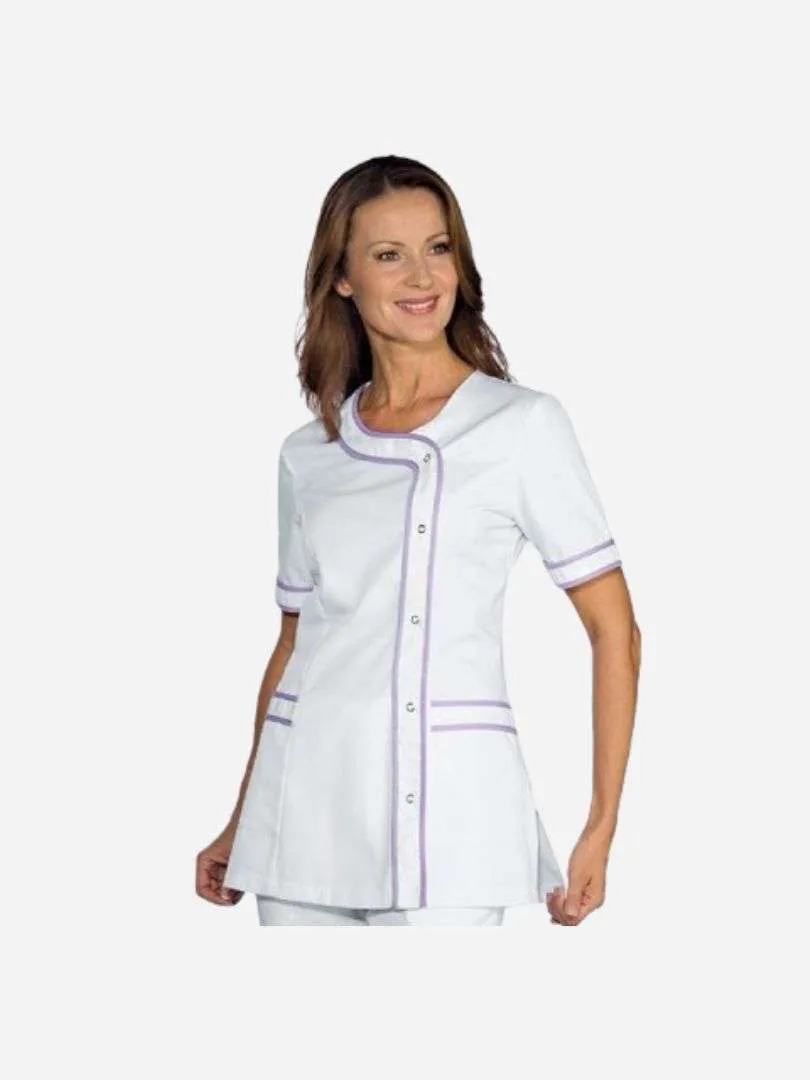 Casacca donna Brasilia mezza manica. Ideale per settore estetico sanitario e alimentare. Utilizzato come divisa da lavoro per aziende di servizi. Con bottoni a pressione, 2 tasche e manica corta.