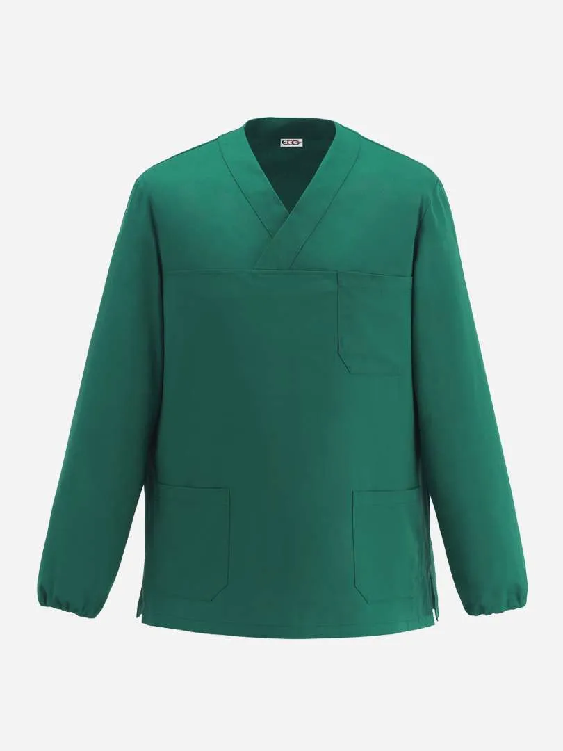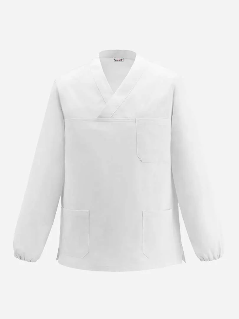 Casacca modello Edoardo a manica lunga, con spacchetti laterali, elastico sui polsi. Accessoriata con due tasche più un ulteriore tasca sul petto (lato cuore). Composta in 100% cotone disponibile nei colori bianco, verde e azzurro. Vestibilità unisex.