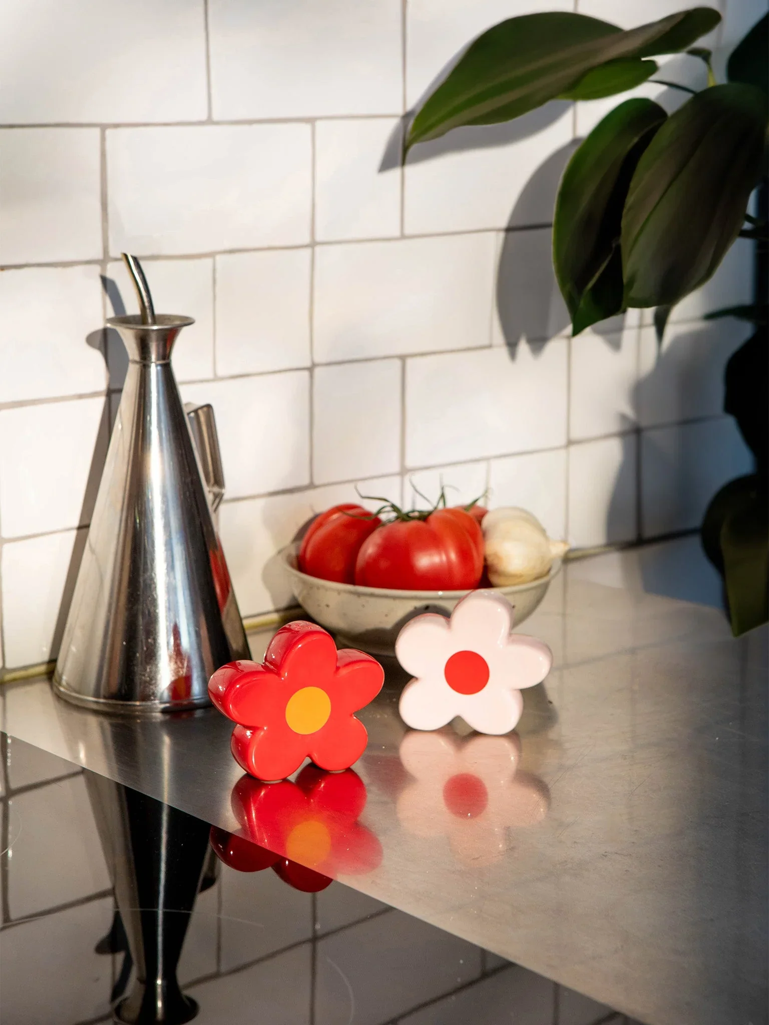 Macini sale e pepe a forma di due simpatici fiori di margherita per rallegrare la vostra tavola.