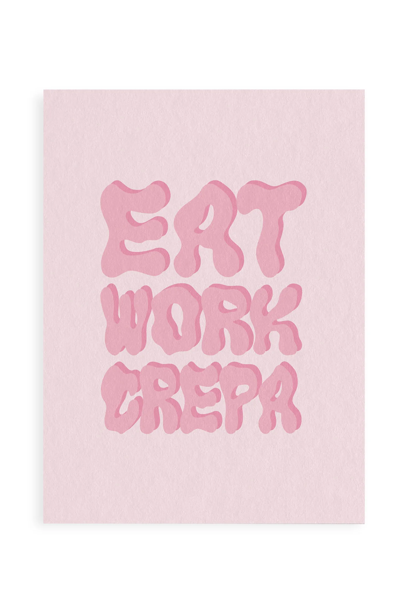 Poster 30 x 40 cm “Eat Work Crepa” con cornice nera in legno e protezione frontale in vetro.