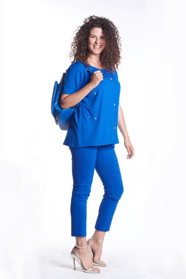 Maglia con applicazioni di perle e strass, leggermente svasata