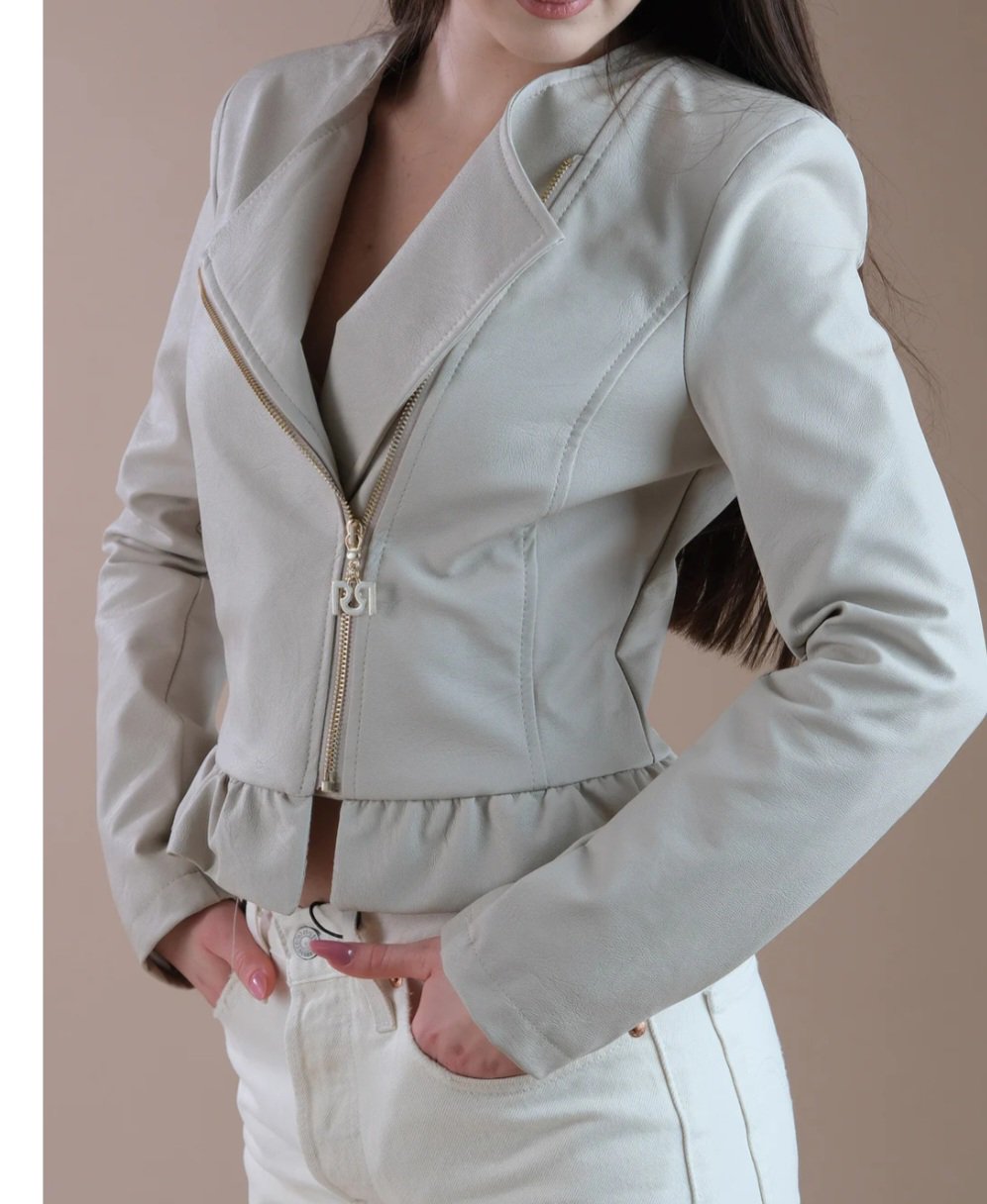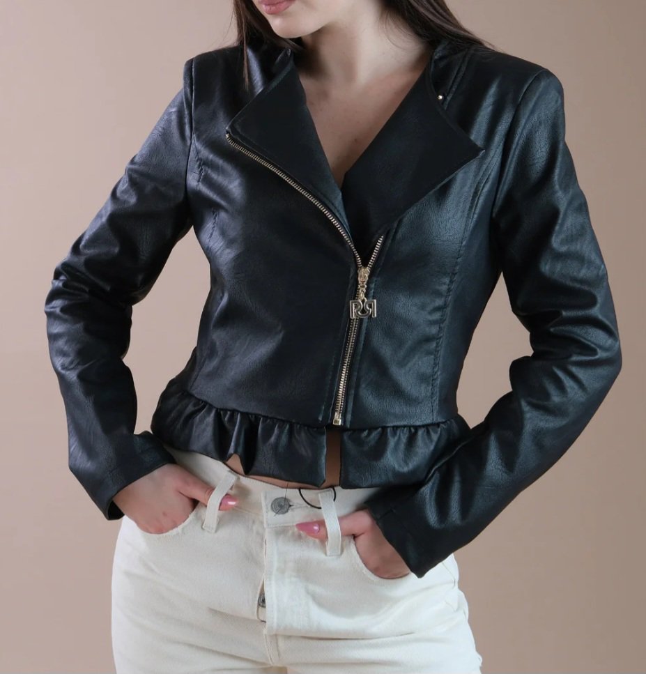 giacca in ecopelle con rousce nuova collezione 2024 cerniera laterale completamente foderato