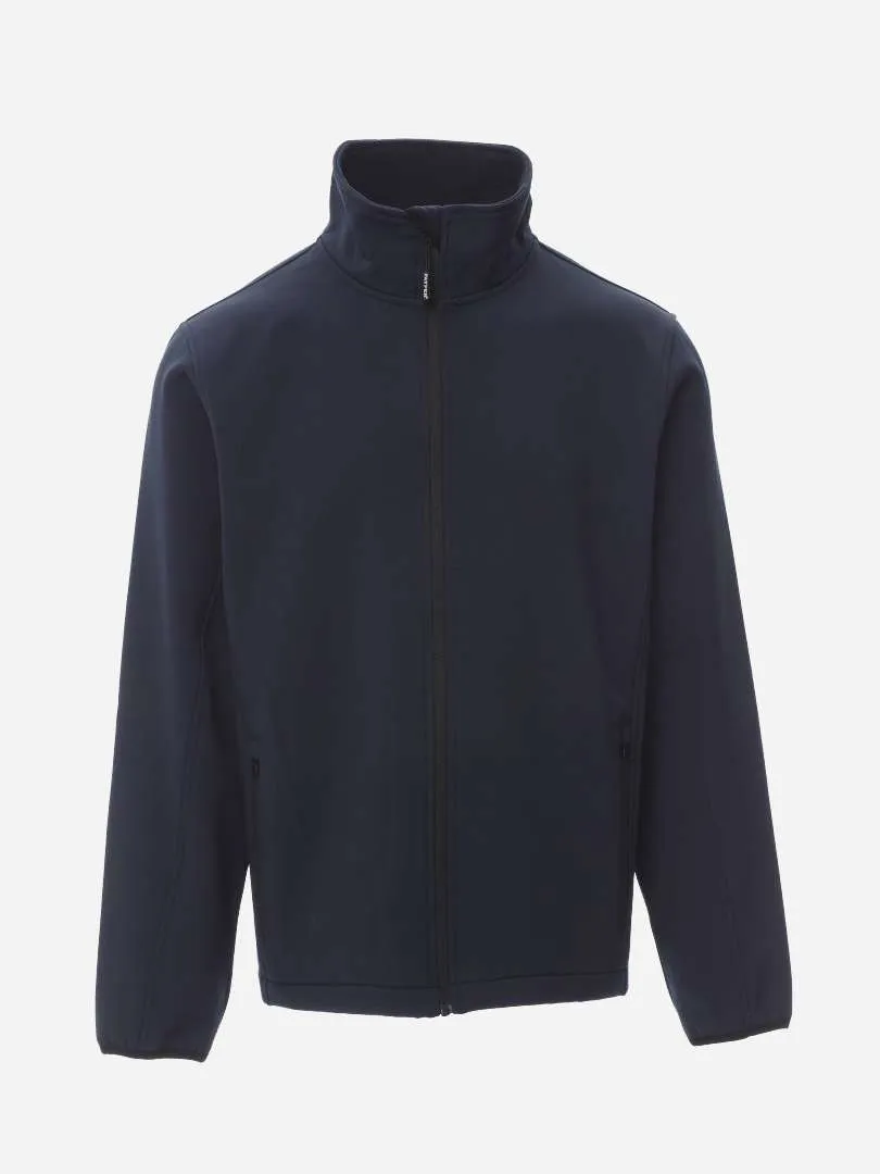Giacca ergonomica da uomo a due strati con trattamento water repellent, manica a giro, zip lunga SBS nastrata, fine bordino elasticizzato ai polsi, 2 tasche laterali con zip. Tessuto 100% poliestere.