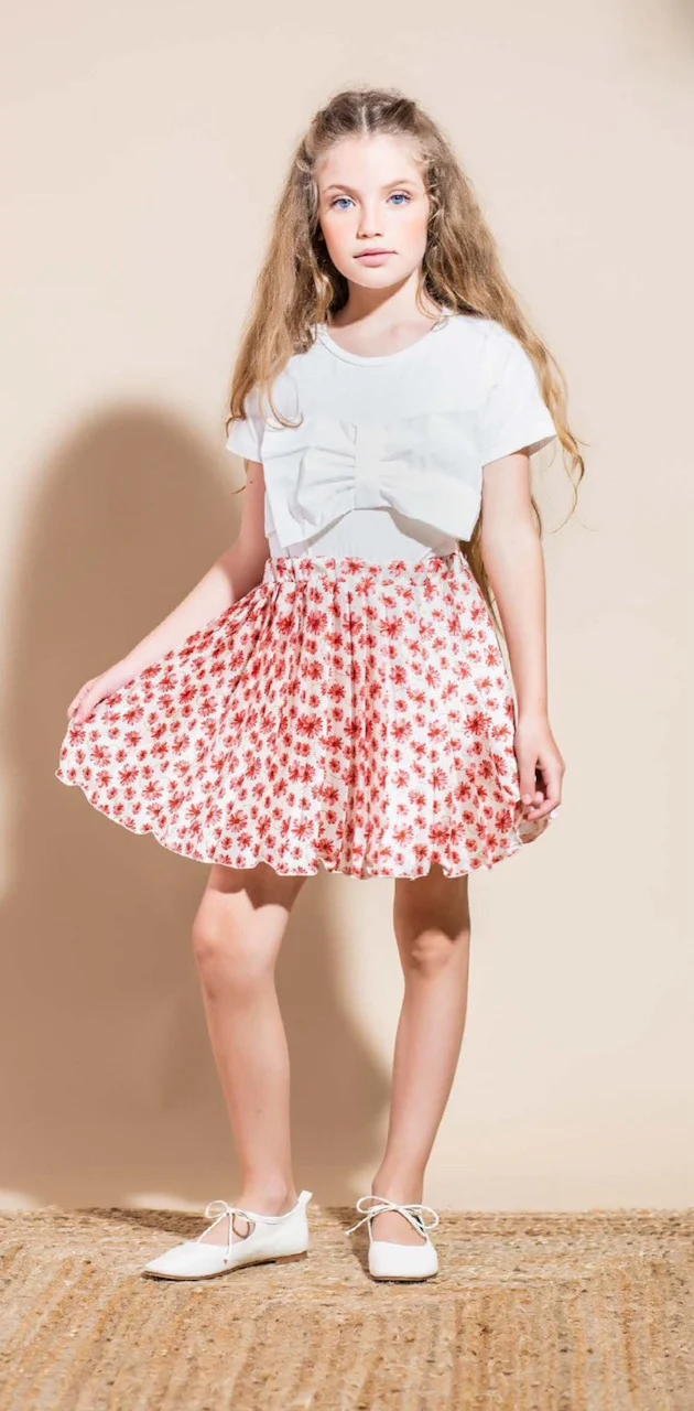Gonna Vicolo bambina plissettata a fantasia floreale con elastico in vita con fodera sotto. Composizione 100% poliestere. Taglie 4 anni, 6 anni, 8 anni, 10 anni, 12 anni.
