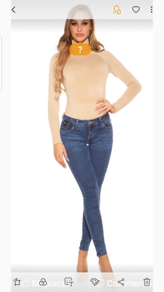 Jeans skinny. 75% Cotone, 23% poliestere, 2% elastan.