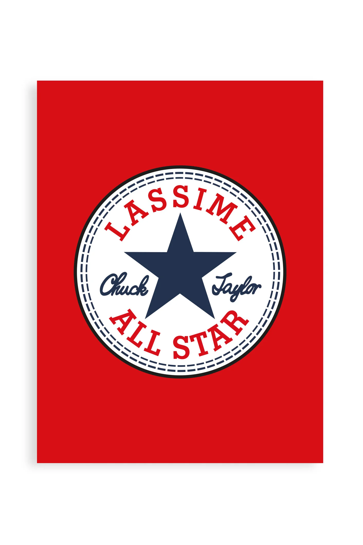 Poster 30 x 40 cm “Lassime All Star” con cornice nera in legno e protezione frontale in vetro.