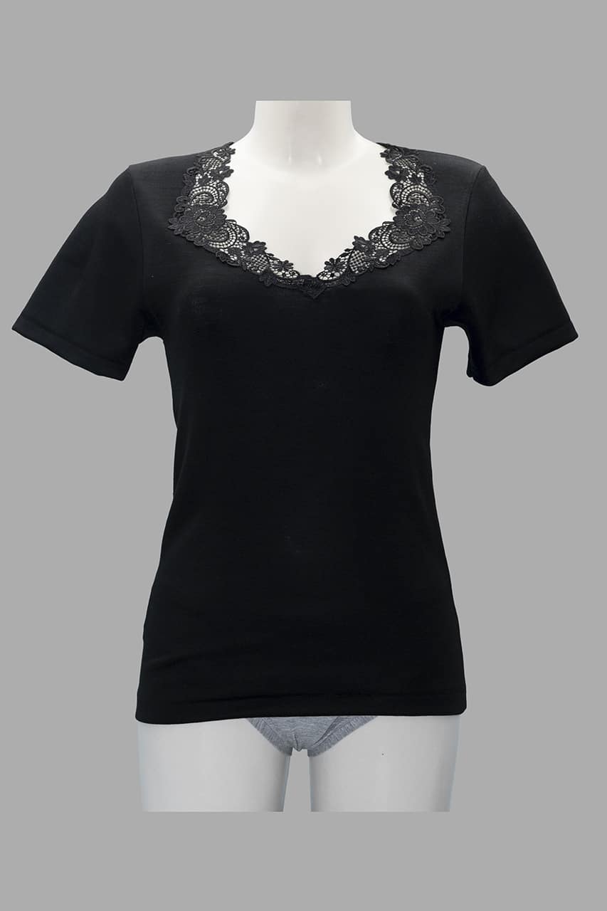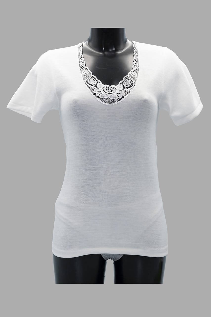 Maglia intima donna lana cotone Rosanna 140 con inserti in pizzo