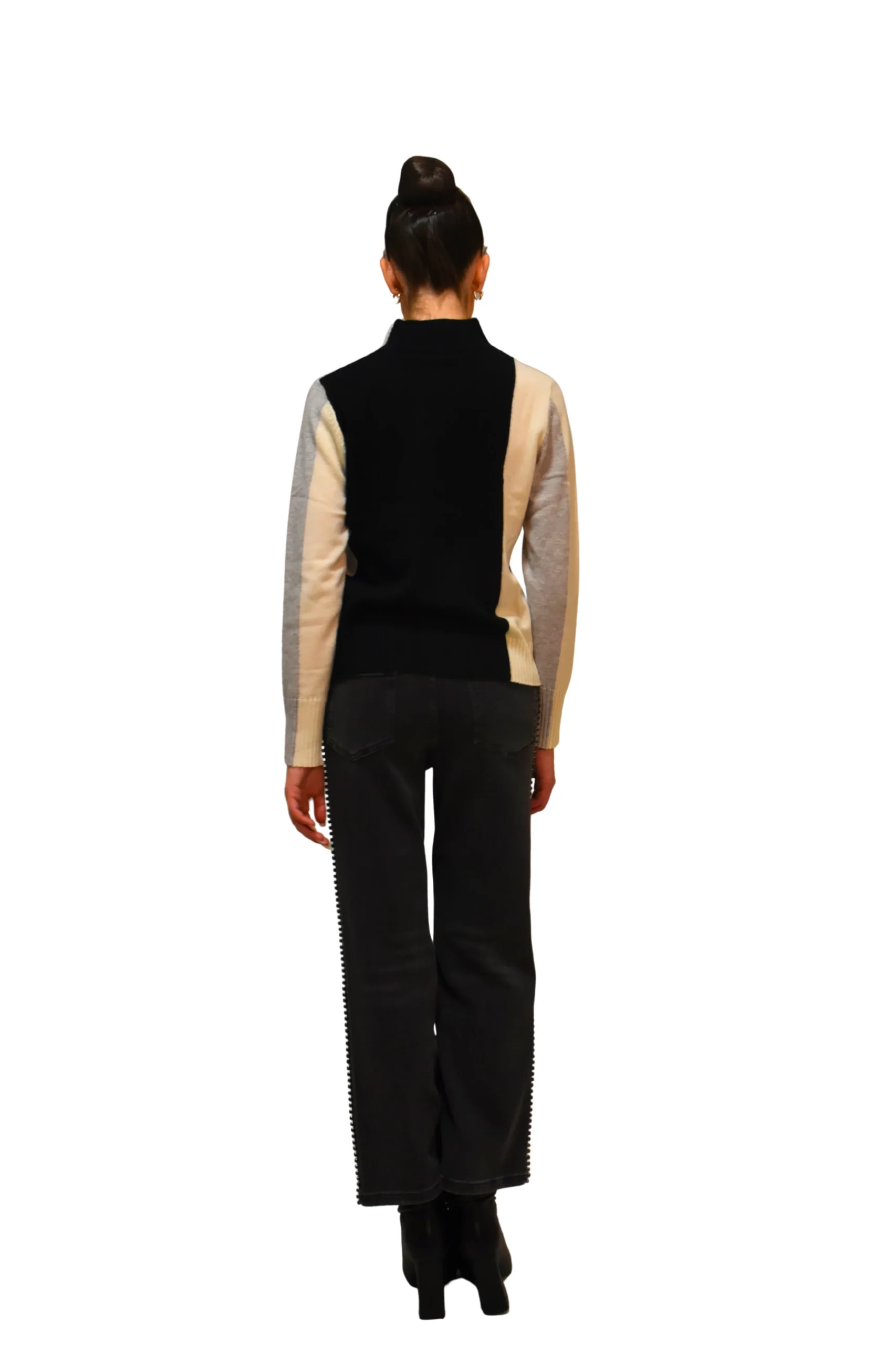 Maglia in misto lana e cashmere bianca e grigia con ricamo fiore a contrasto.