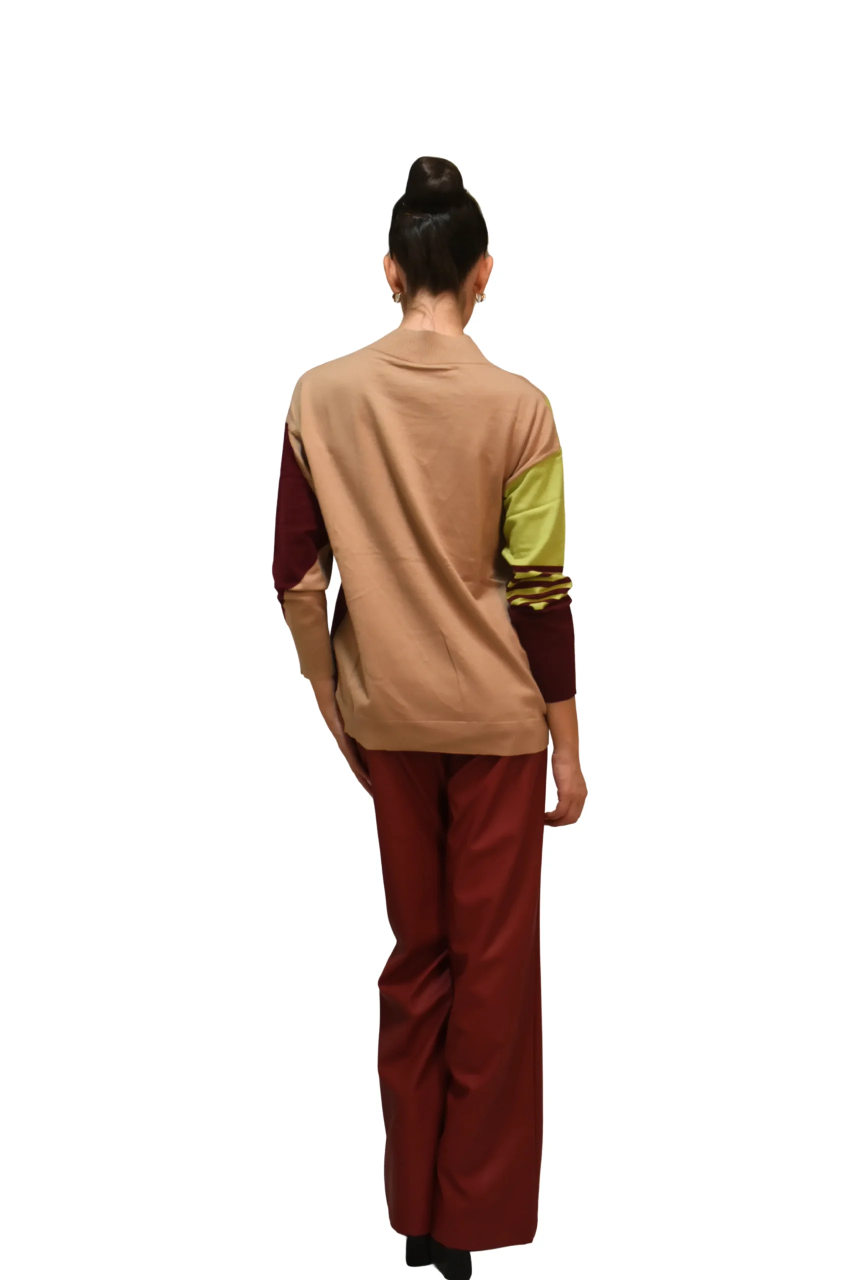 Maglia in viscosa a motivo geometrico multicolor, modello dalla vestibilità ampia. Maniche lunghe e collo a lupetto.Bordi in maglia a costine.53% Viscosa 24% Poliestere, 23% PoliammideCodice: 97B167-KIWI