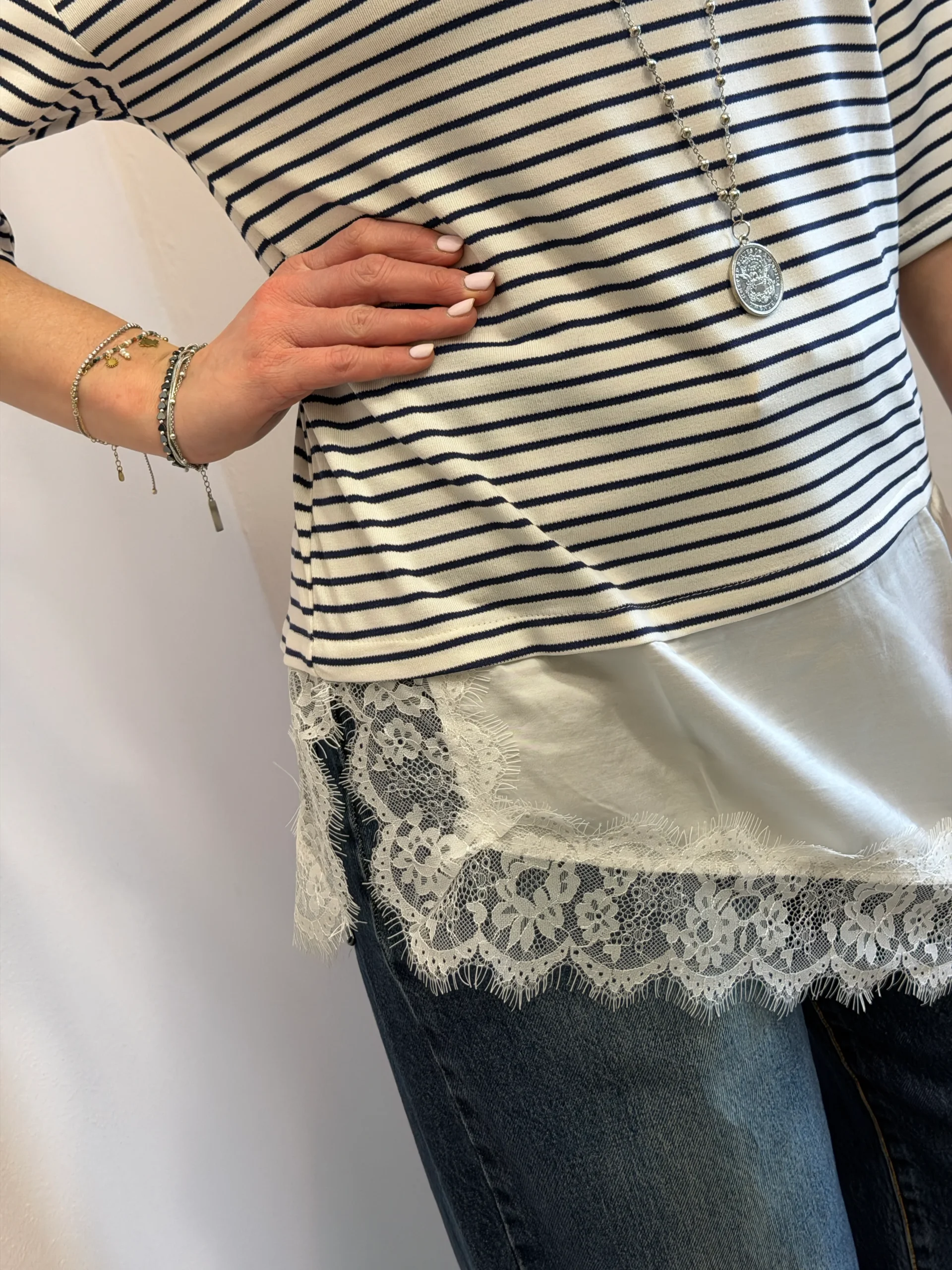 Maglia rigata blu+ bordi in pizzo Susy Mix