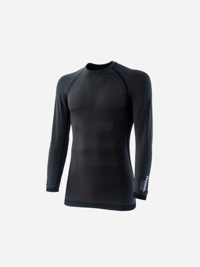 Maglia termica con girocollo, maniche lunghe raglan per la massima vestibilità e comfort. Tessuto morbido ed elasticizzato, con speciali tramature adattive sul petto e sulla schiena per libertà di movimento e maggior aderenza al corpo. Collo, fondo e orli maniche a costine dello stesso materiale, per un miglior comfort. Struttura tubolare ergonomica per assicurare un perfetto adattamento alla fisionomia del corpo. composizione: 54% poliammide, 37% polipropilene, 9% elastan. Peso 220 g/m²
