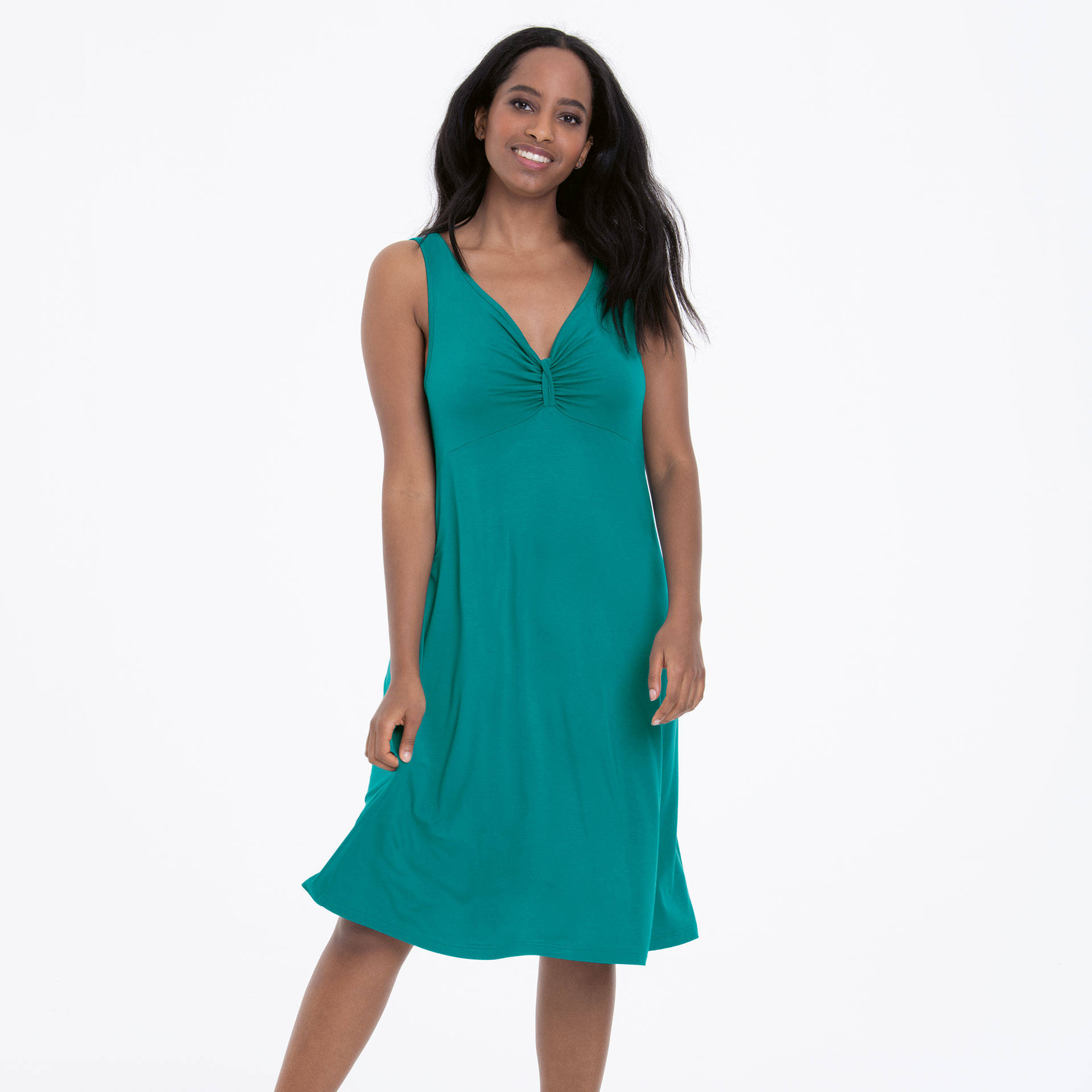 Questo abito bellissimo e confortevole è perfetto per la stagione estiva. L’abito da spiaggia Mala è lungo fino al ginocchio e smanicato. Grazie alla caratteristiche del tessuto Jersey morbido e fluido, offre una piacevole vestibilità. Ha una forma aderente con linee ad A e uno scollo a V con delicate arricciature sul collo e sottili strisce decorative sul davanti. La parte centrale anteriore ha un elemento ornamentale e un orlo arrotondato.