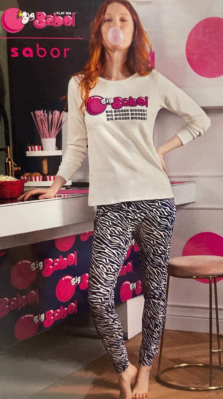Pigiama caldo cotone donna BigBabol 5340, perfetto per affrontare l’inverno con allegria e calore. Questo pigiama donna invernale della Sabor è realizzato in caldo cotone, garantendo comfort e morbidezza per le tue serate di relax. Il design a girocollo con polsini mantiene il calore, mentre la grande stampa BigBabol dona un tocco giocoso e originale, ideale per chi ama i pigiami simpatici.