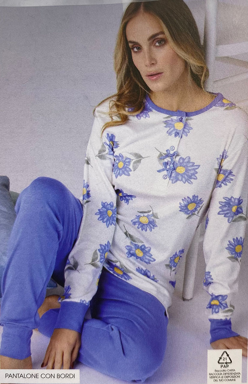 Pigiama caldo cotone donna Karelpiù KF9002PLD, in 100% cotone con maglia floreale e pantaloni tinta unita, unisce calore, comfort ed eleganza per notti invernali piacevolmente rilassanti.