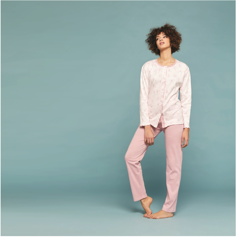 Pigiama Donna invernale aperto davanti con tasche laterali manica lunga pantalone lungo Cippi
