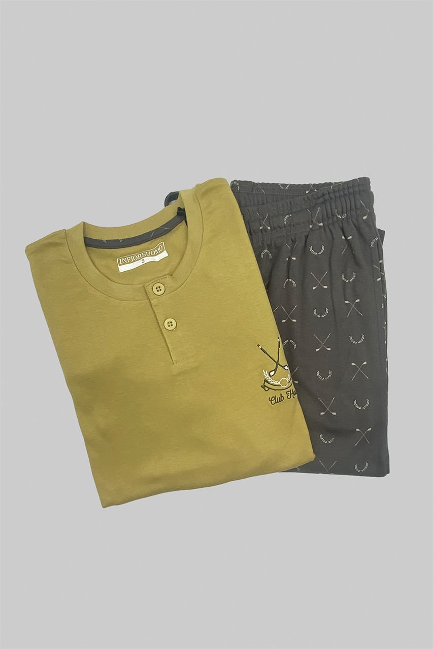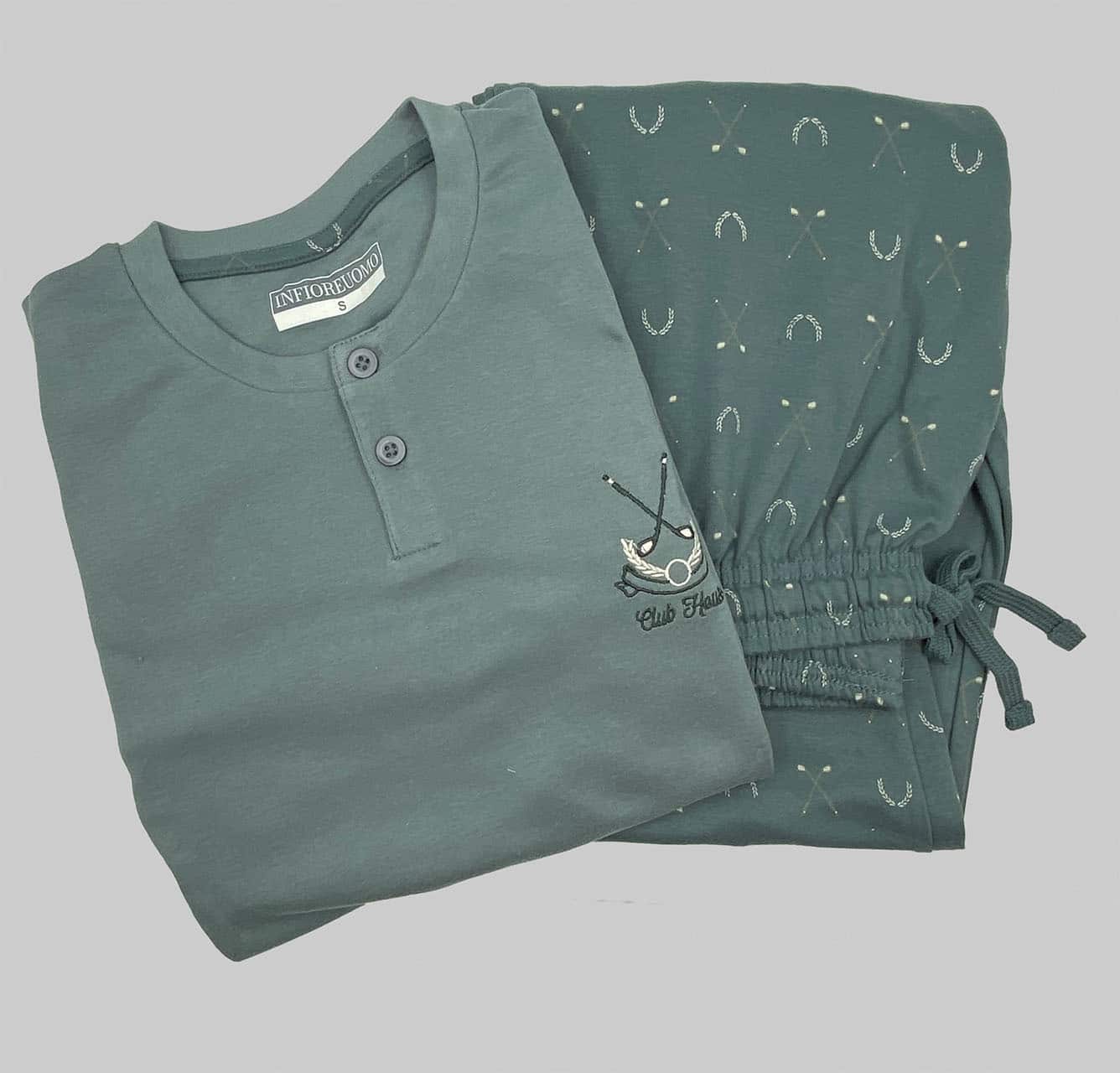 Disponibile nei colori bogey e swing, il pigiama è proposto nelle taglie dalla 46 alla 52 per soddisfare diverse esigenze. Il tessuto in caldo cotone e la composizione 100% cotone assicurano una sensazione di calore naturale, ideale per affrontare la stagione fredda con comfort e stile.