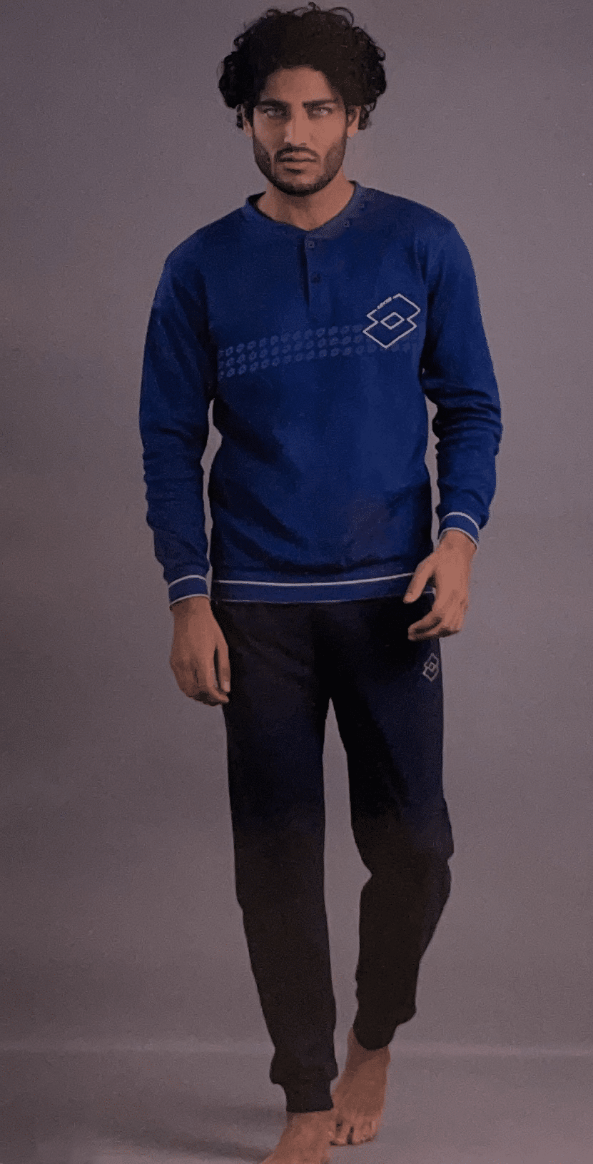 Pigiama uomo invernale Lotto LP2080: il pigiama perfetto per affrontare l’inverno con il massimo comfort. Realizzato in caldo cotone, questo pigiama caldo cotone uomo ti garantirà notti piacevoli e senza freddo. Il design serafino con bottoni e polsini elastici sulle maniche e caviglie assicura una vestibilità confortevole e funzionale, mantenendo il calore senza stringere.