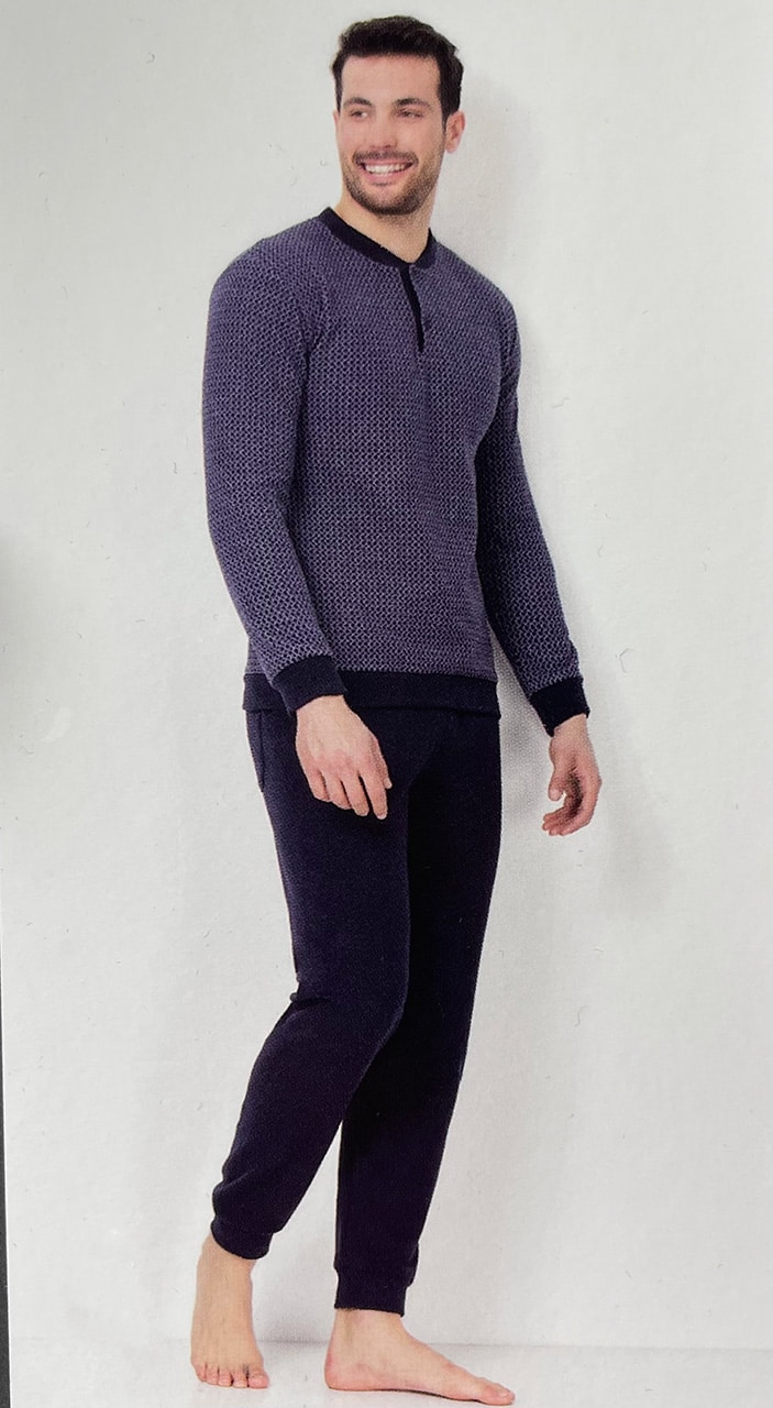 Il Pigiama uomo invernale punto milano Il Granchio GP2047 offre comfort e stile con maglia stampata, pantaloni a contrasto e tessuto caldo, perfetto per le serate invernali.