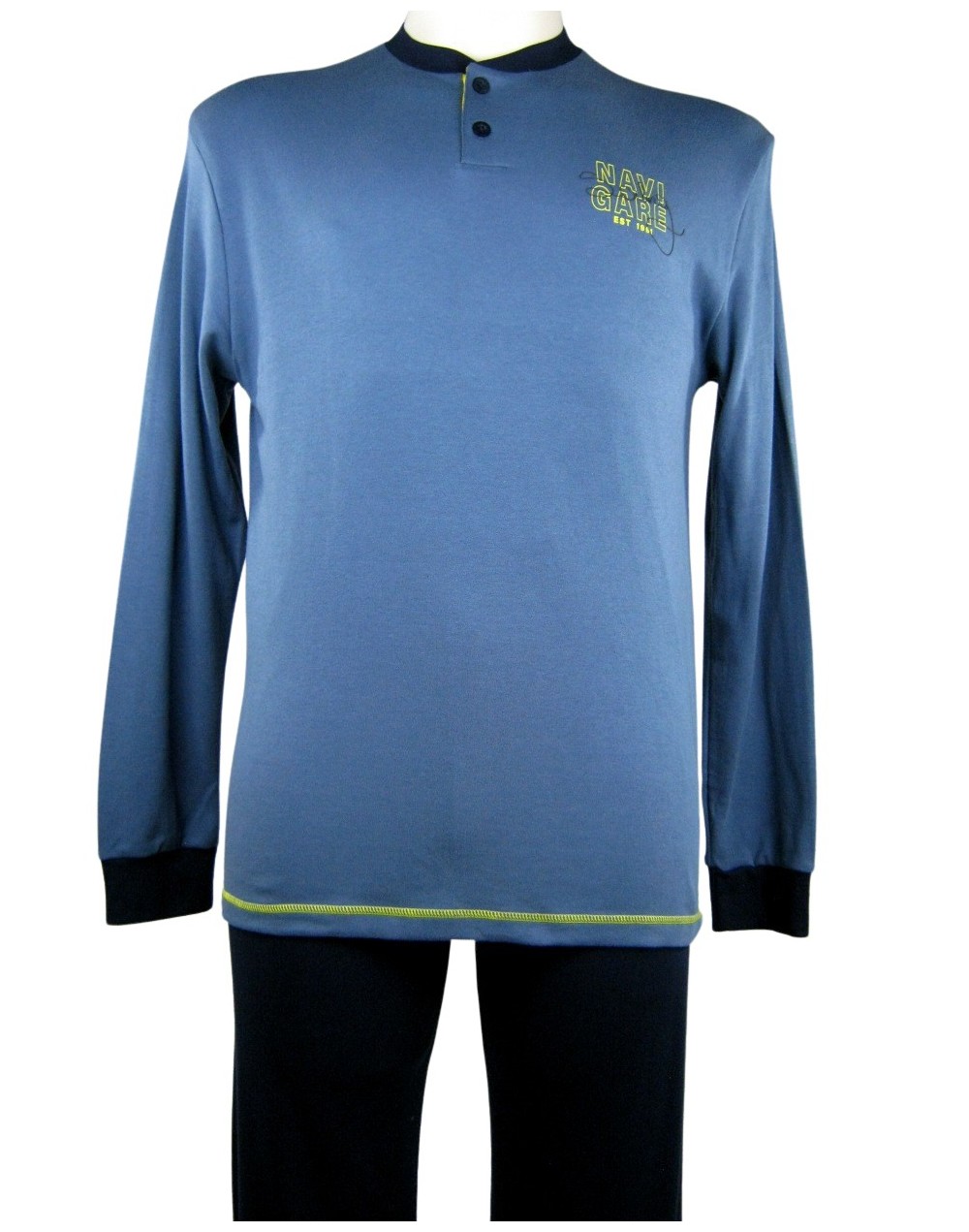 Pigiama Uomo serafino Interlock manica lunga e pantalone lungo con polsini Navigare