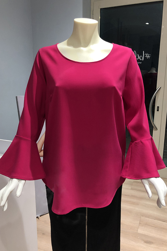 Casacca dal taglio leggermente svasato con fondo stondato e manica con volant. Composizione: 98% Poliestere, 2% Elastan