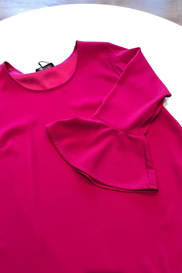Casacca dal taglio leggermente svasato con fondo stondato e manica con volant.