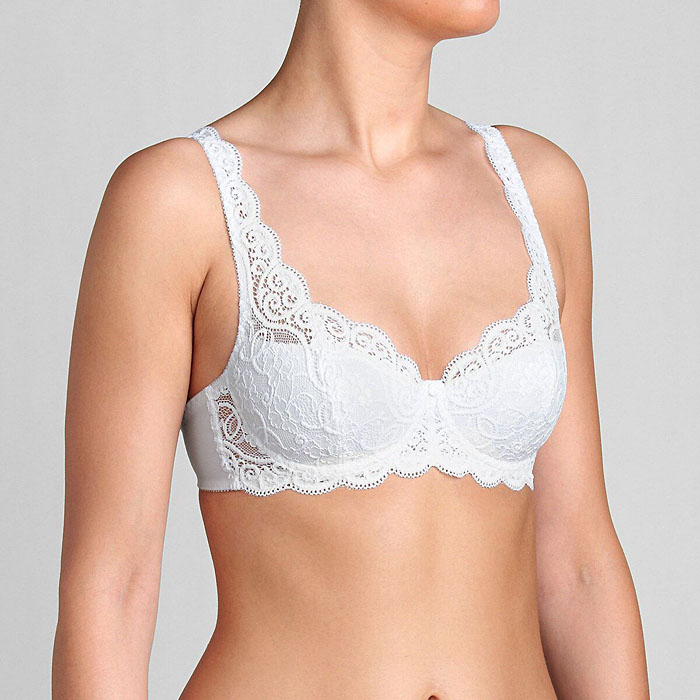 • Reggiseno sfoderato con ferretto, icona della perfetta vestibilità • Pregiato pizzo elasticizzato e ampio range di coppe e taglie • Prolungamento sottoseno