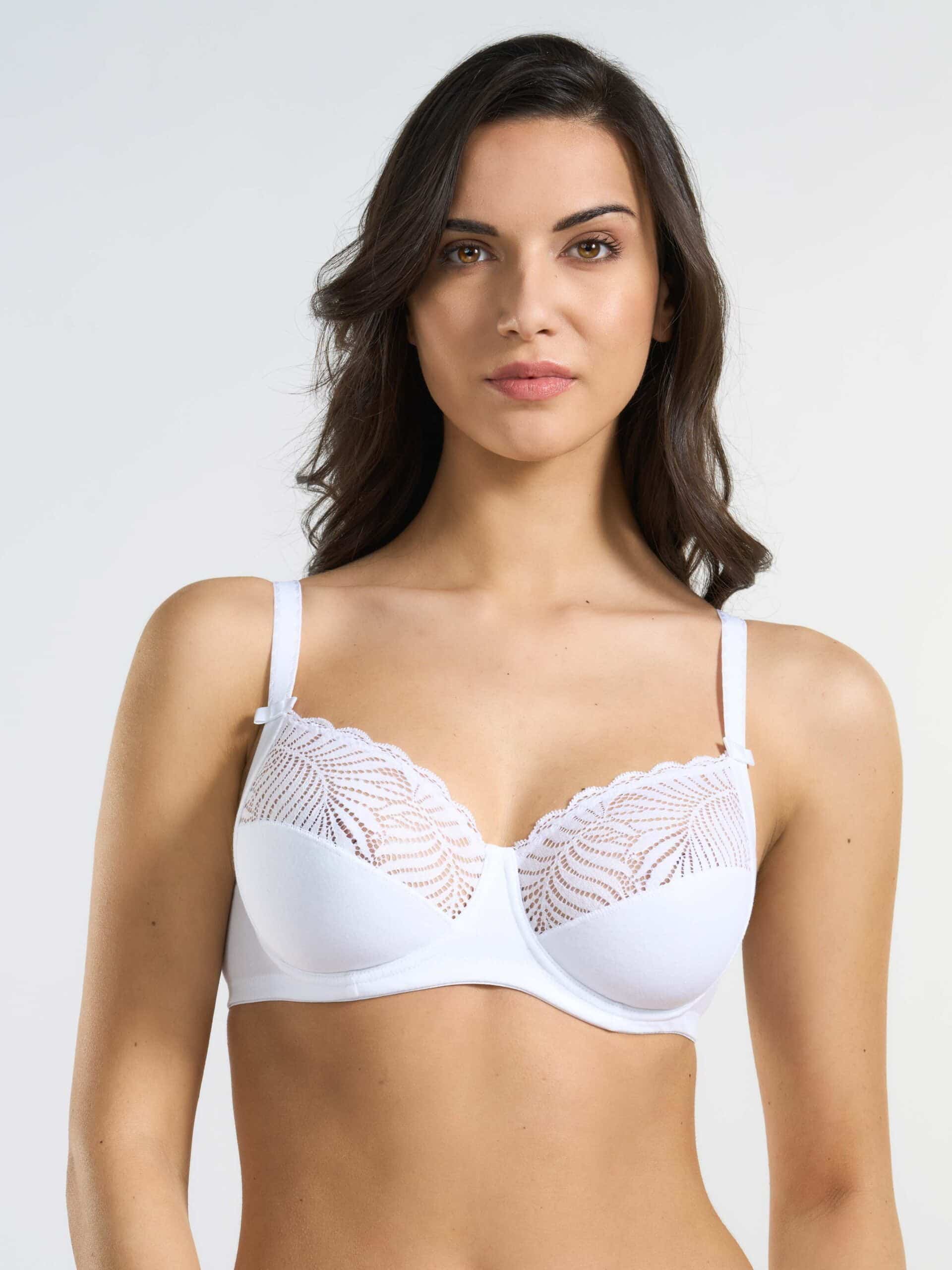 Reggiseno in cotone elasticizzato Spiman MENTA: sostegno ottimale con ferretto, cotone elasticizzato, inserti in pizzo e struttura a tre sezioni. Comfort ed eleganza per ogni occasione.