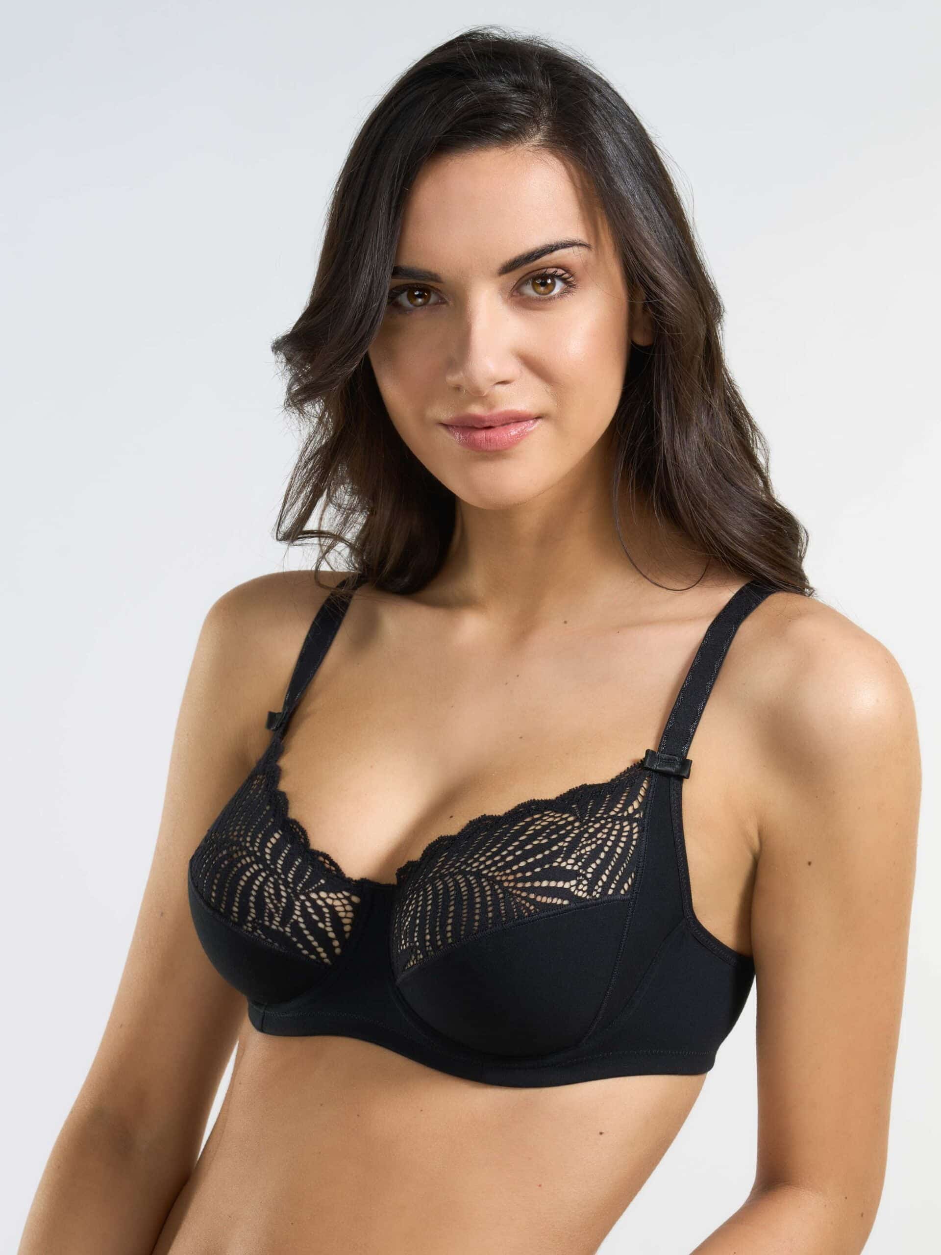 Realizzato in cotone elasticizzato, garantisce una vestibilità comoda e morbida sulla pelle. Gli inserti in pizzo elasticizzato sulle coppe aggiungono un tocco di femminilità ed eleganza, rendendolo ideale sia per l’uso quotidiano che per le occasioni speciali. Le spalline regolabili assicurano un sostegno personalizzabile, mentre la chiusura con gancio a tre regolazioni consente un comfort su misura. Inoltre, la parte centrale alta è studiata per offrire una maggiore stabilità e adattarsi perfettamente a ogni taglia.