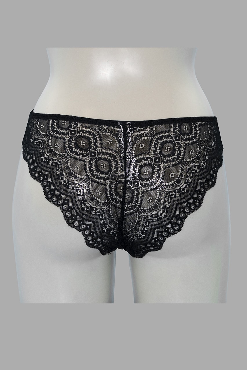 Lo slip in pizzo si distingue per la cura nei dettagli e per il tessuto leggero e traspirante che garantisce una vestibilità perfetta. Disponibile nei colori classici bianco e nero, si adatta facilmente a qualsiasi outfit intimo. Le taglie, dalla 2 alla 5, permettono di trovare la giusta vestibilità, valorizzando ogni silhouette con eleganza.