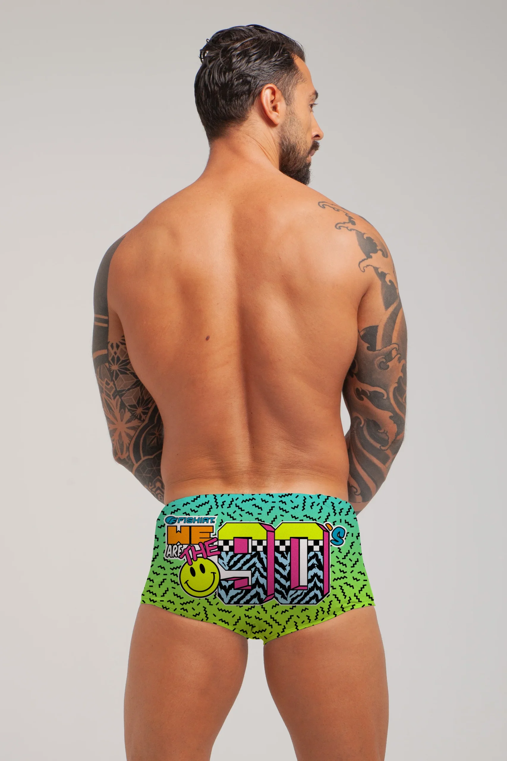 COSTUME DA BAGNO IN TESSUTO TECNICO ITALIANO GRAFICHE UNICHE DISEGNATE A MANO LACCETTO INTERNO PROTEZIONE DAI RAGGI UV ULTRA-STRETCH FIBRA RINFORZATA IN PBT RAPIDA ASCIUGATURA MADE IN ITALY RESISTENTE A CLORO, SALSEDINE E ALTRI AGENTI ESTERNI COMPOSIZIONE: 47% PBT 53% POLIESTERE – 150 gr/mq2