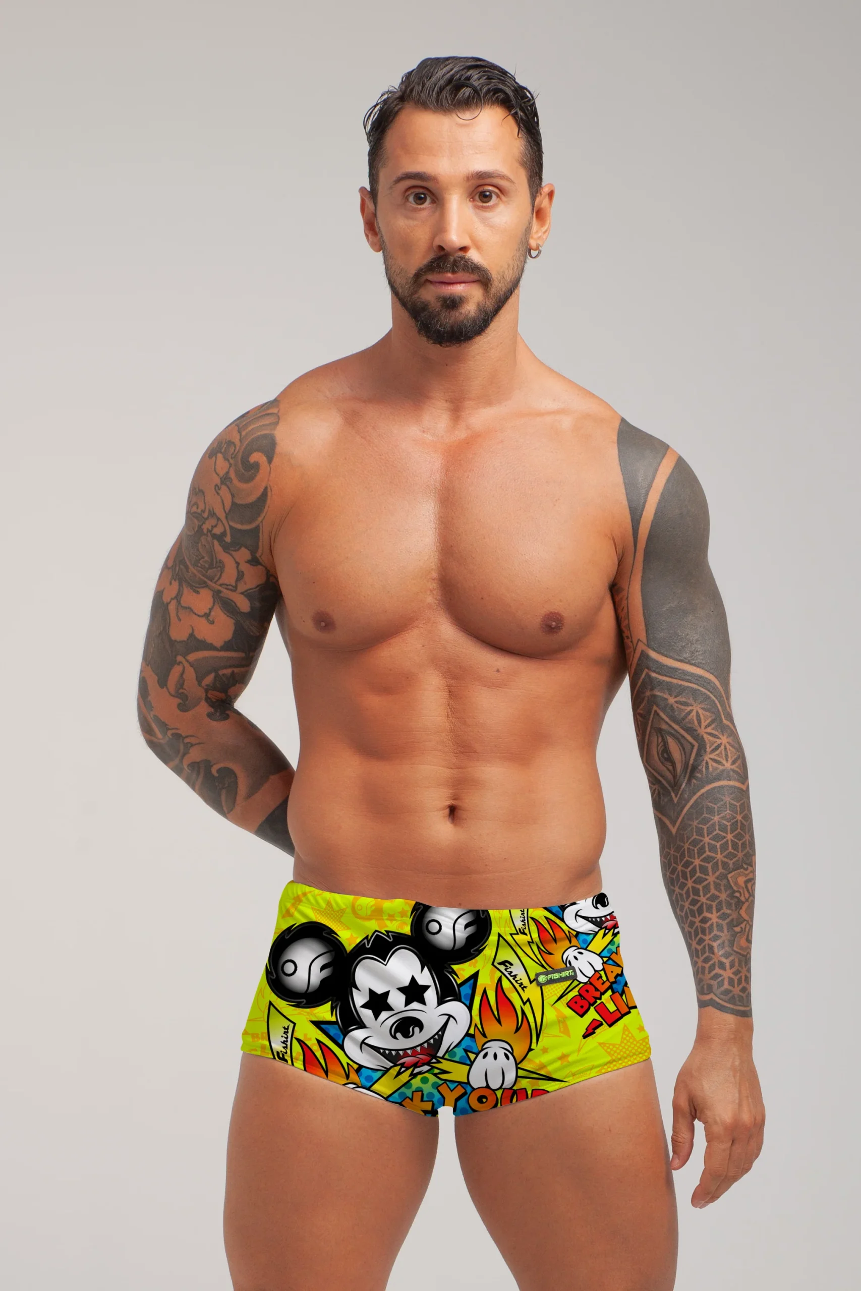COSTUME DA BAGNO IN TESSUTO TECNICO ITALIANO GRAFICHE UNICHE DISEGNATE A MANO LACCETTO INTERNO PROTEZIONE DAI RAGGI UV ULTRA-STRETCH FIBRA RINFORZATA IN PBT RAPIDA ASCIUGATURA MADE IN ITALY RESISTENTE A CLORO, SALSEDINE E ALTRI AGENTI ESTERNI COMPOSIZIONE: 47% PBT 53% POLIESTERE – 150 gr/mq2