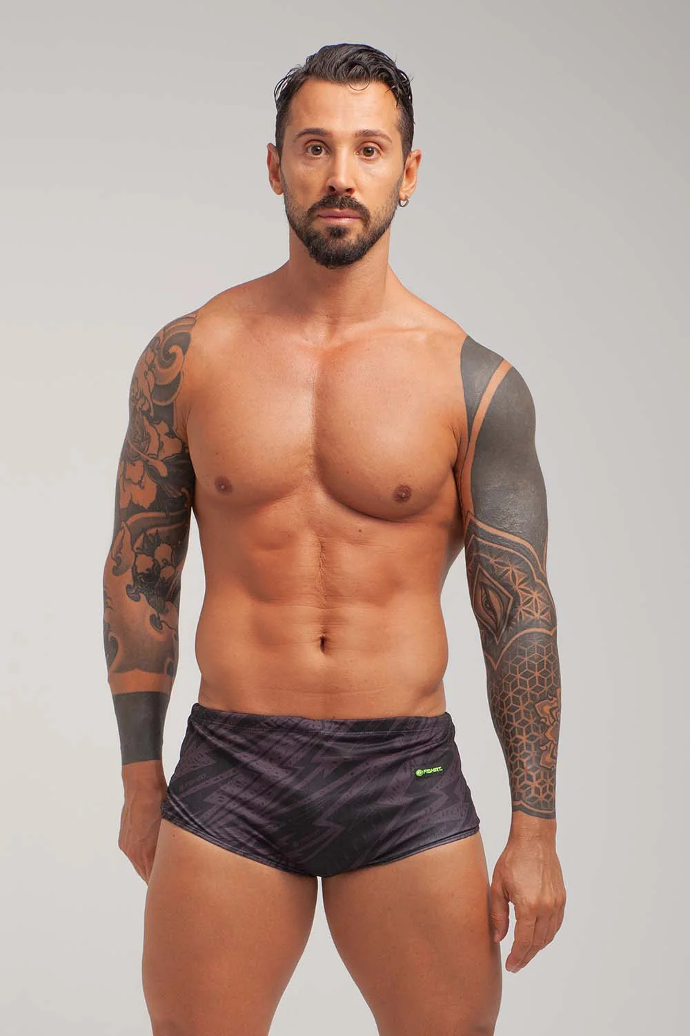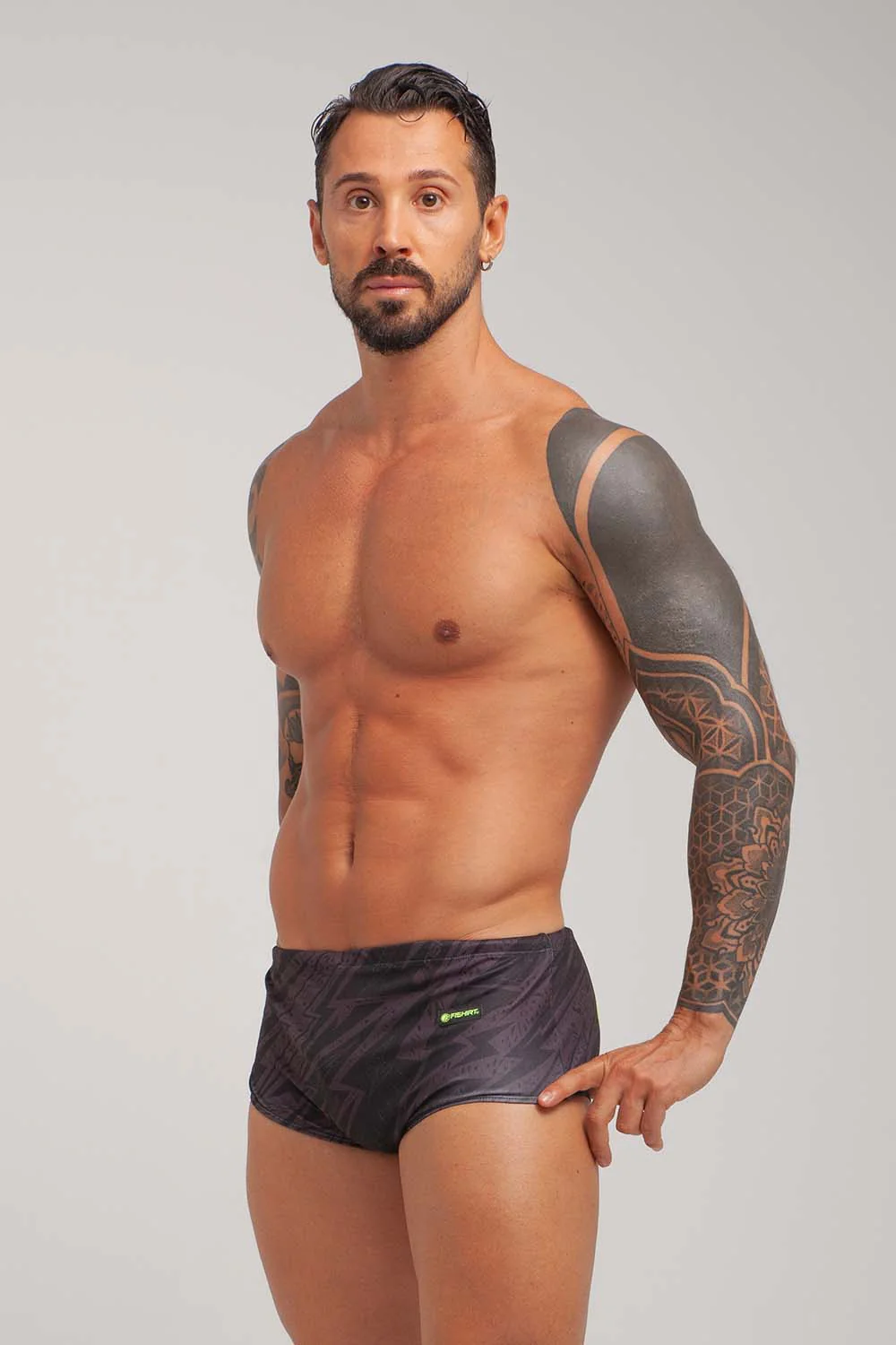 COSTUME DA BAGNO IN TESSUTO TECNICO ITALIANO GRAFICHE UNICHE DISEGNATE A MANO LACCETTO INTERNO PROTEZIONE DAI RAGGI UV ULTRA-STRETCH FIBRA RINFORZATA IN PBT RAPIDA ASCIUGATURA MADE IN ITALY RESISTENTE A CLORO, SALSEDINE E ALTRI AGENTI ESTERNI COMPOSIZIONE: 47% PBT 53% POLIESTERE – 150 gr/mq2