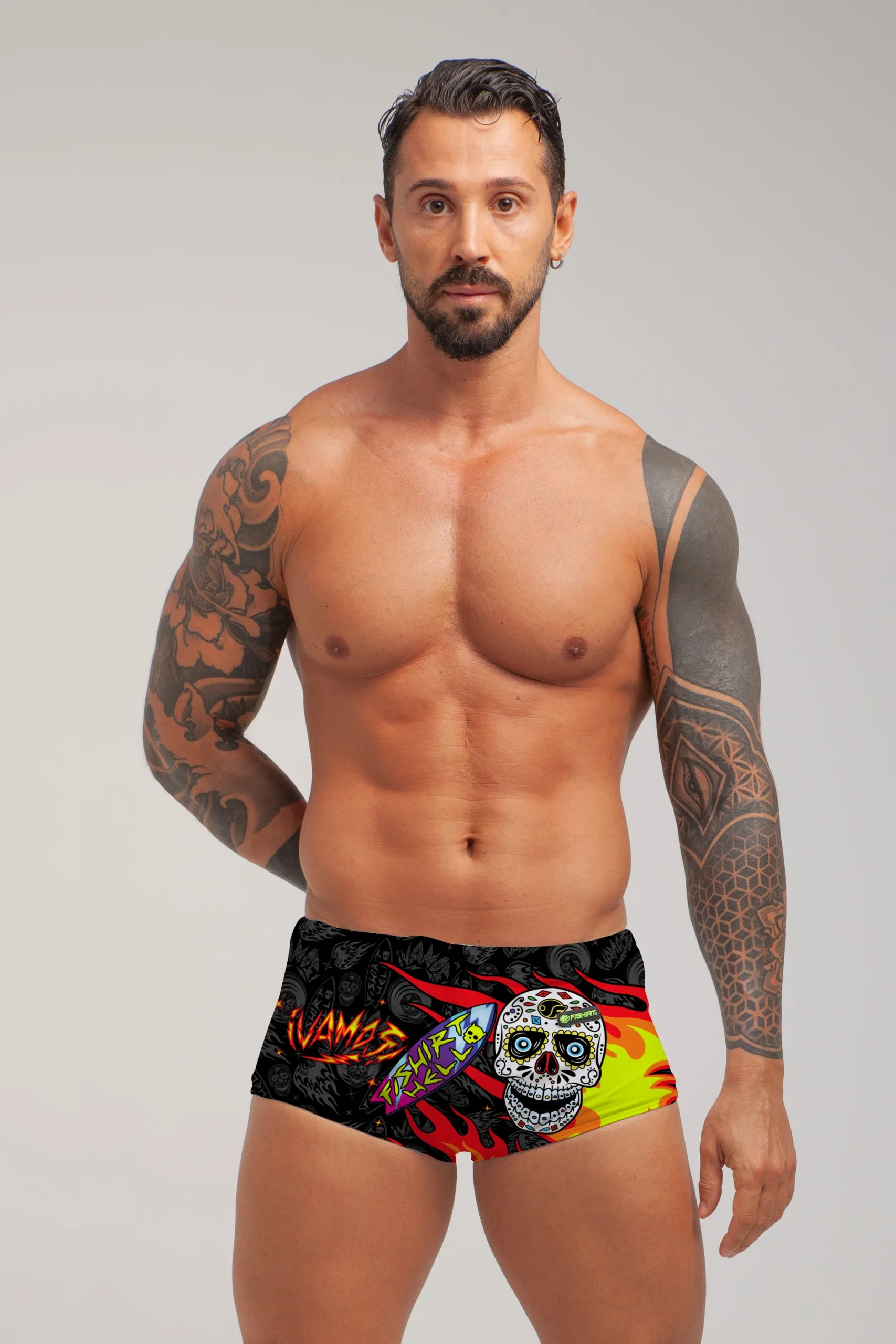 COSTUME DA BAGNO IN TESSUTO TECNICO ITALIANO GRAFICHE UNICHE DISEGNATE A MANO LACCETTO INTERNO PROTEZIONE DAI RAGGI UV ULTRA-STRETCH FIBRA RINFORZATA IN PBT RAPIDA ASCIUGATURA MADE IN ITALY RESISTENTE A CLORO, SALSEDINE E ALTRI AGENTI ESTERNI COMPOSIZIONE: 47% PBT 53% POLIESTERE – 150 gr/mq2