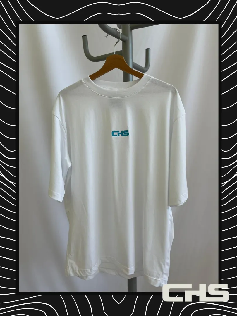 T-shirt girocollo in jersey è il comune denominatore della linea streetwear CHS. vestibilità oversize, ricamo centrale logo CHS colore turchese. composizione 100% cotone ring spun gr/mq 185 Made in Italy