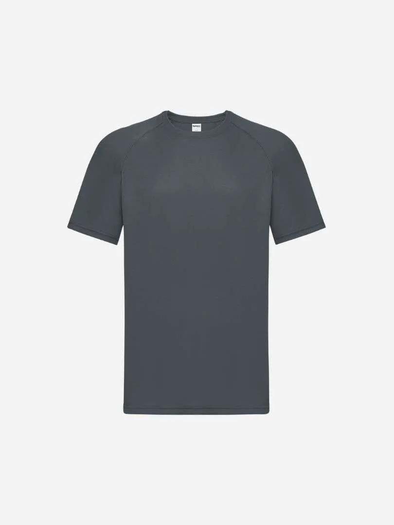 T-shirt maniche corte raglan, cuciture flatlock, tessuto traspirante e nastro parasudore al collo. Struttura con cuciture laterali.